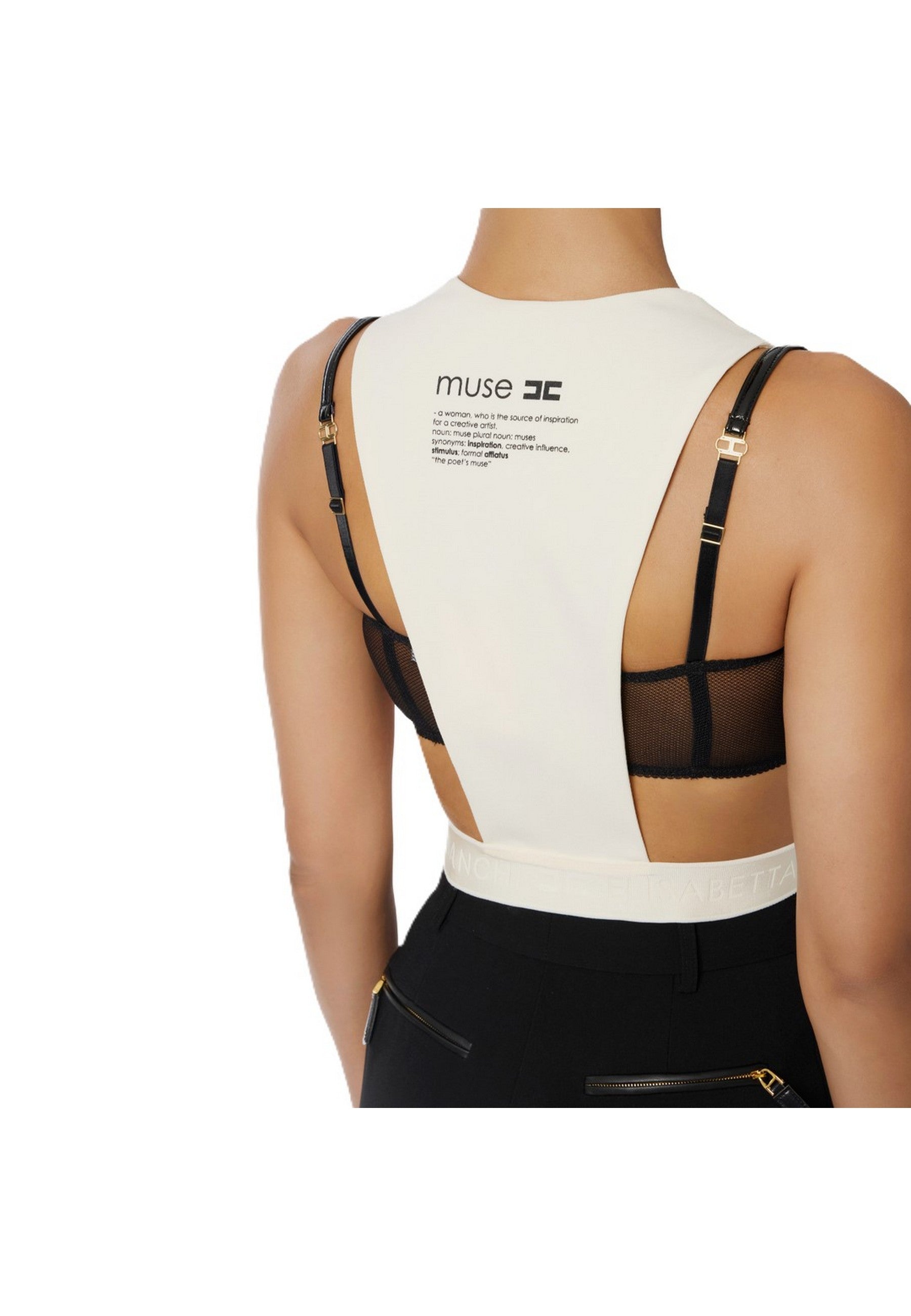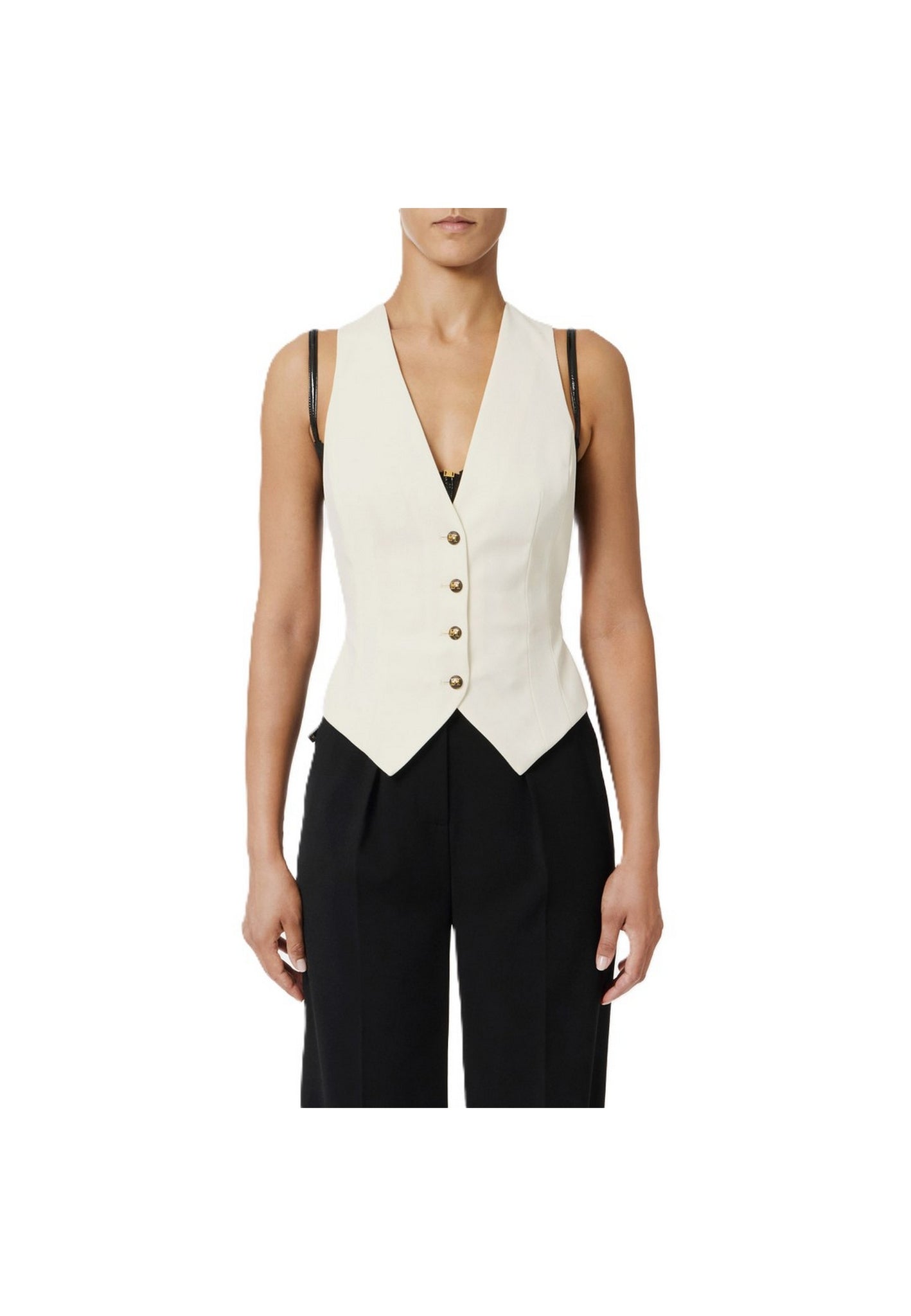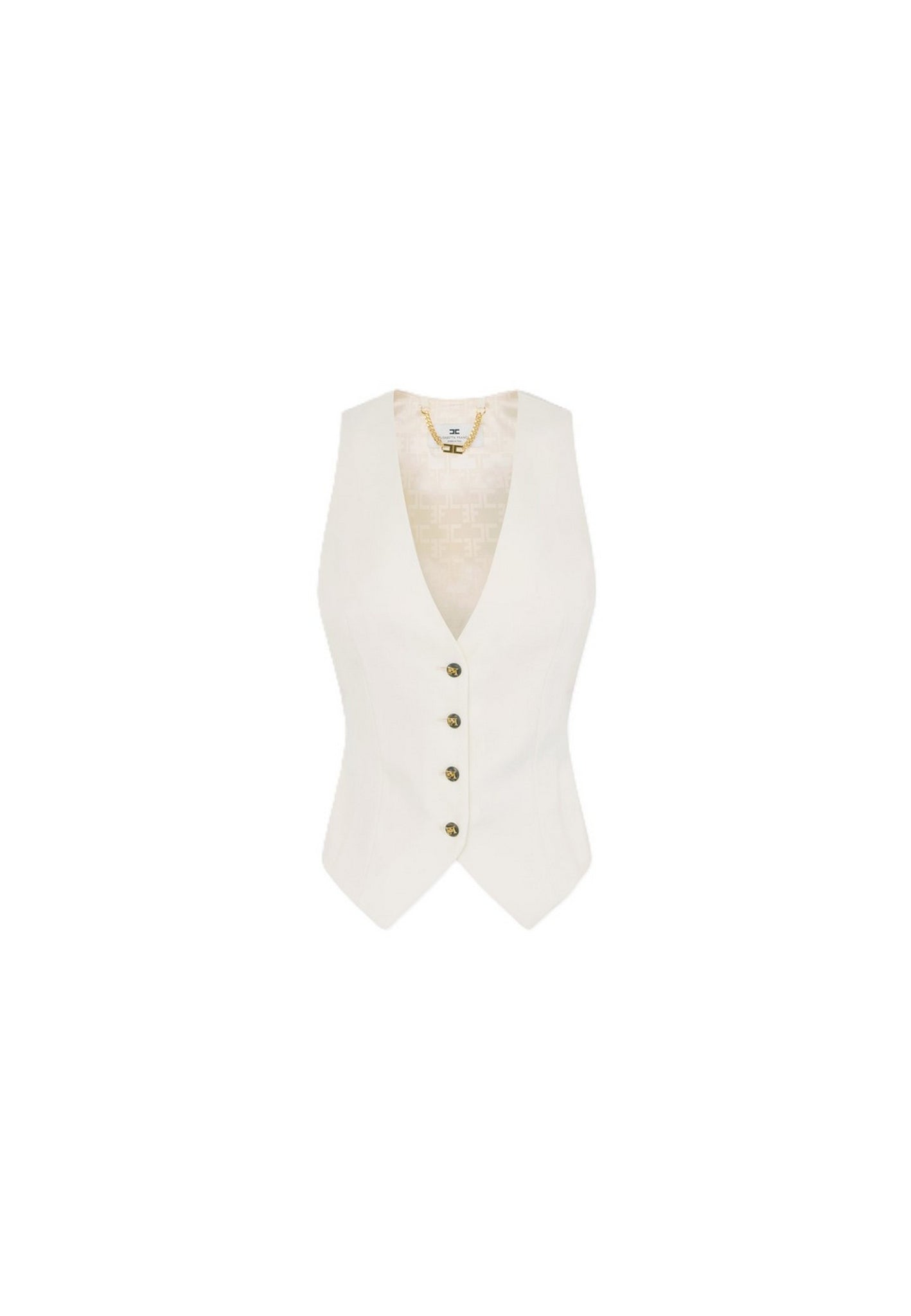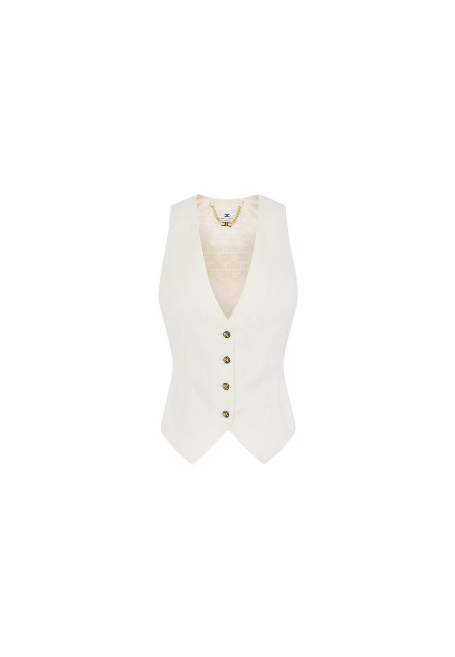 Gilet realizzato in gabardina di cotone, dalla vestibilità aderente. Il design classico è rivisitato con dettagli originali, come l'elastico posteriore e il lettering ispirazionale stampato sul retro a contrasto. Completano il capo i bottoni con effetto corno.