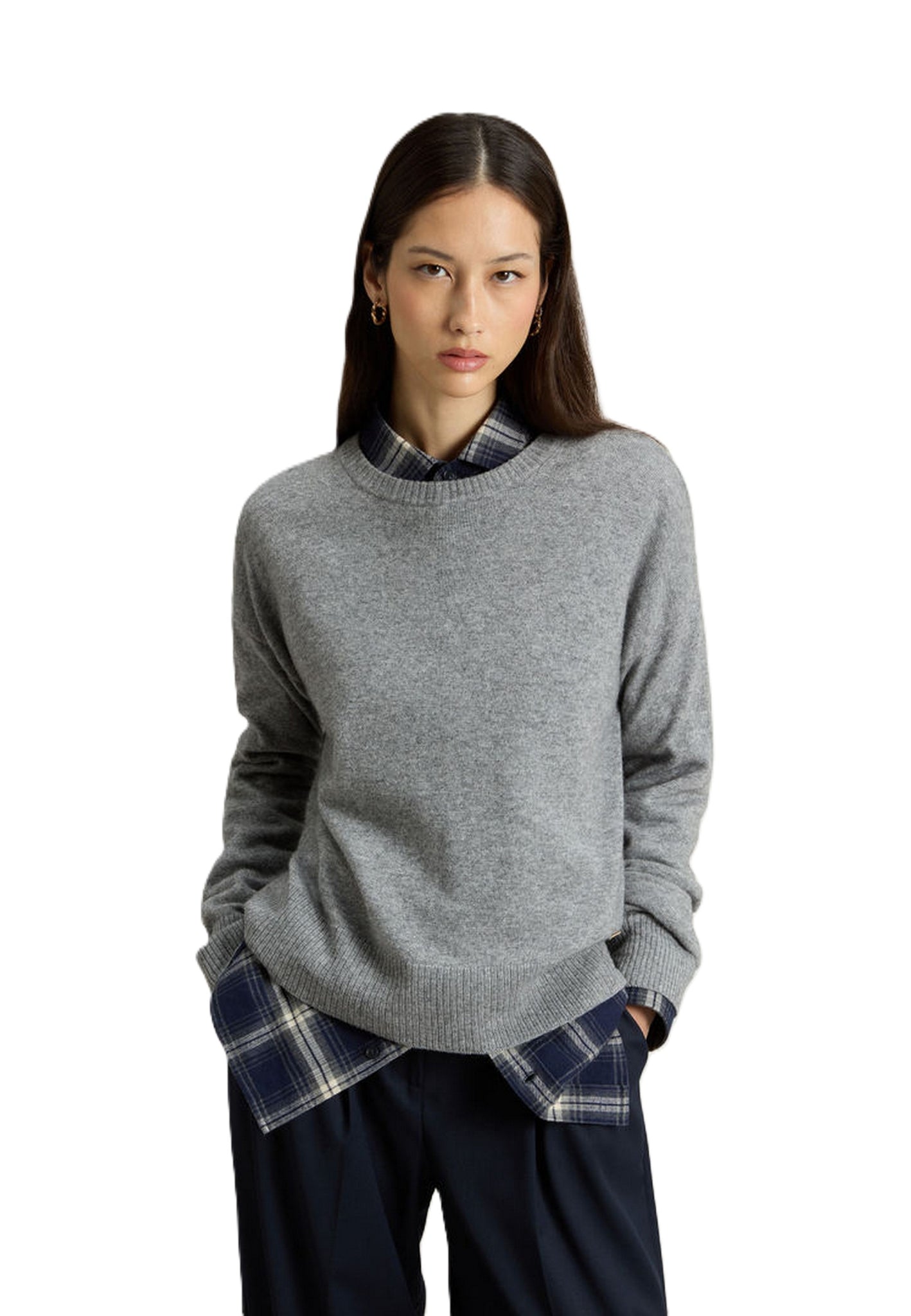Essenziale e versatile, questa maglia girocollo è pensata per offrire comfort quotidiano con un tocco di eleganza. Realizzata in un pregiato misto lana vergine e cashmere, si distingue per la sua struttura morbida e leggera, piacevole a contatto con la pelle.