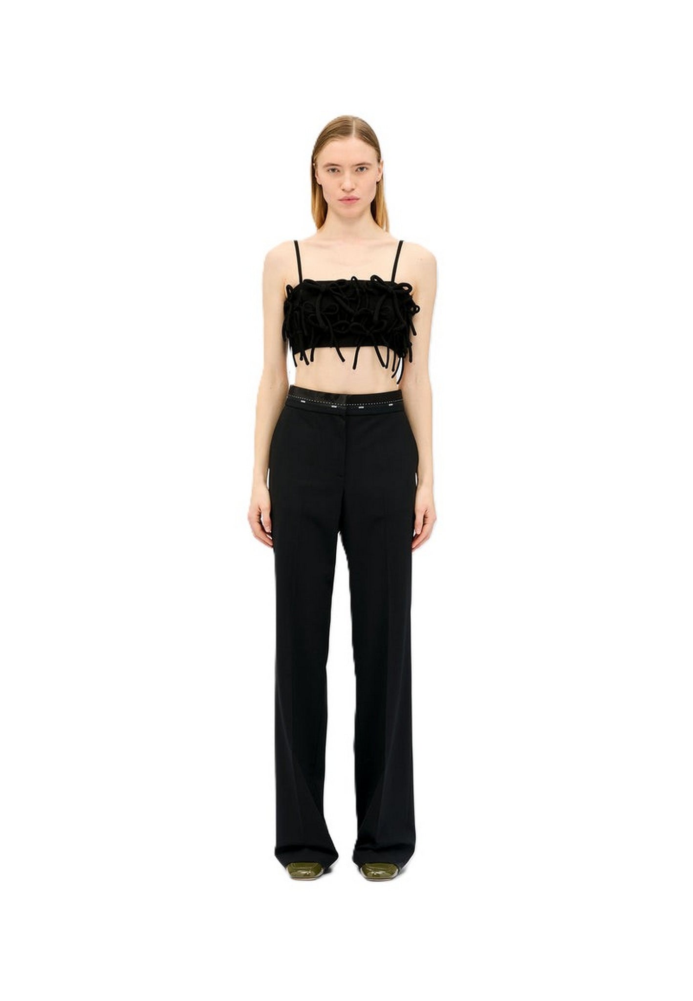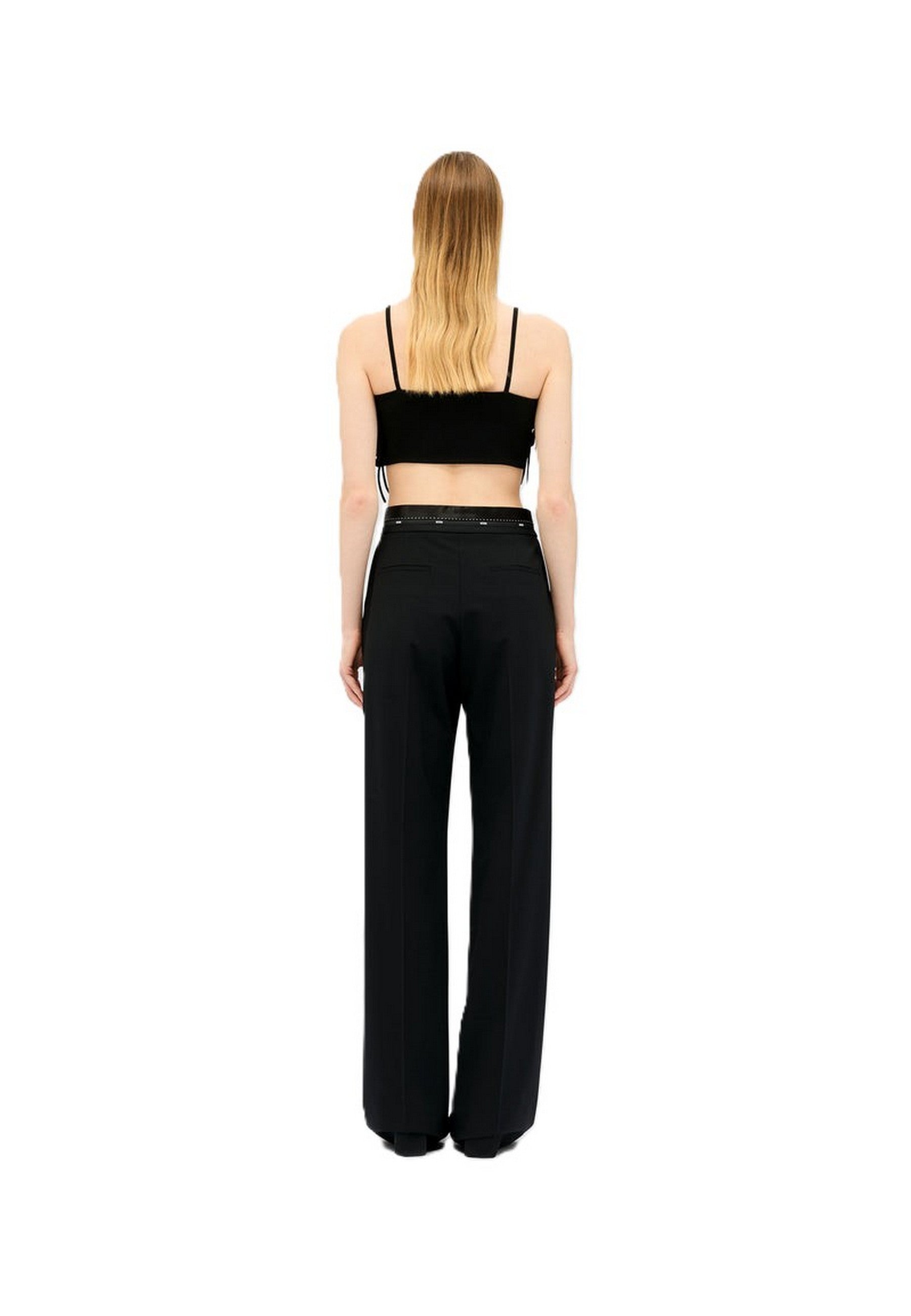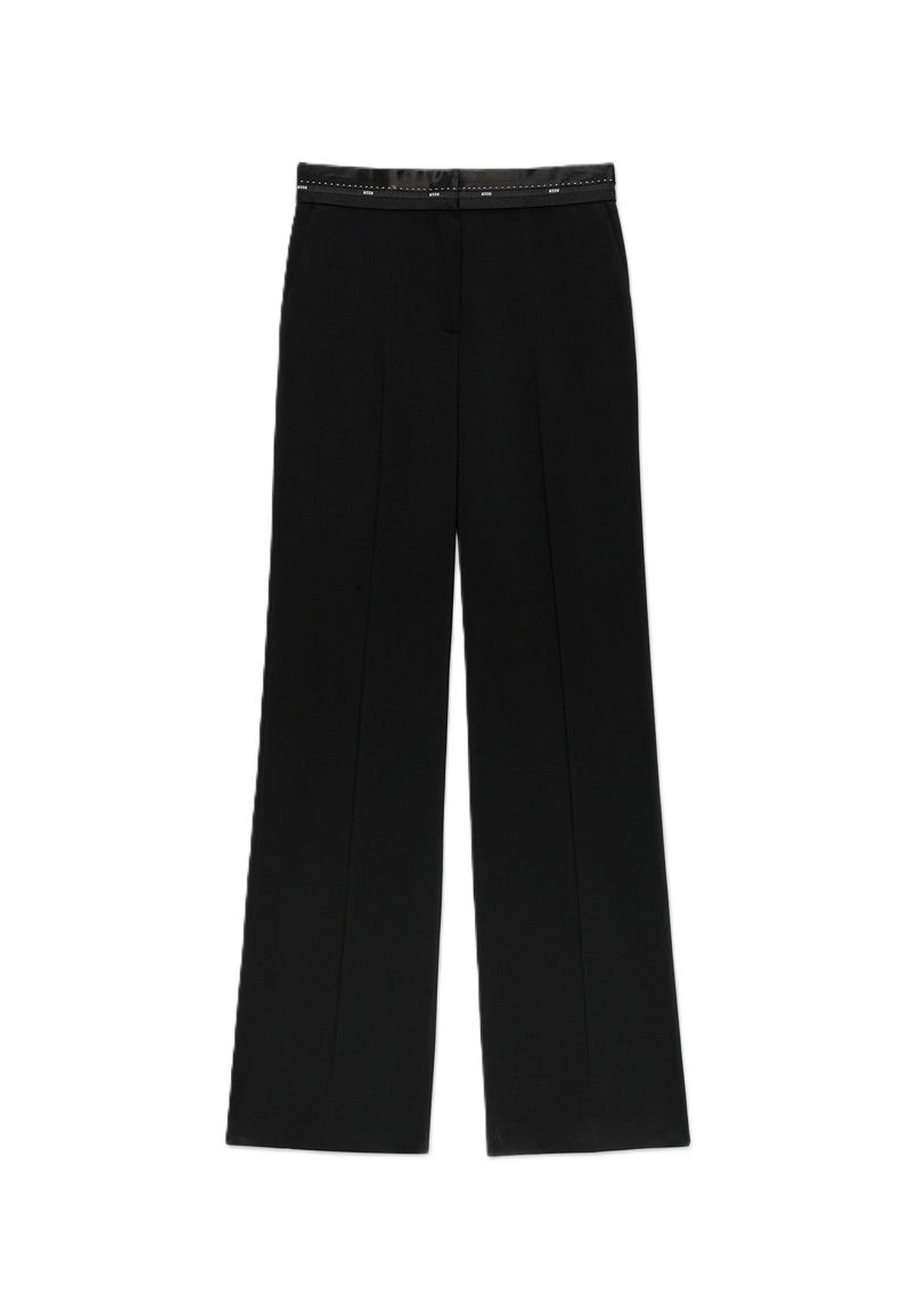 Pantaloni palazzo neri in fresco lana con cinta logata