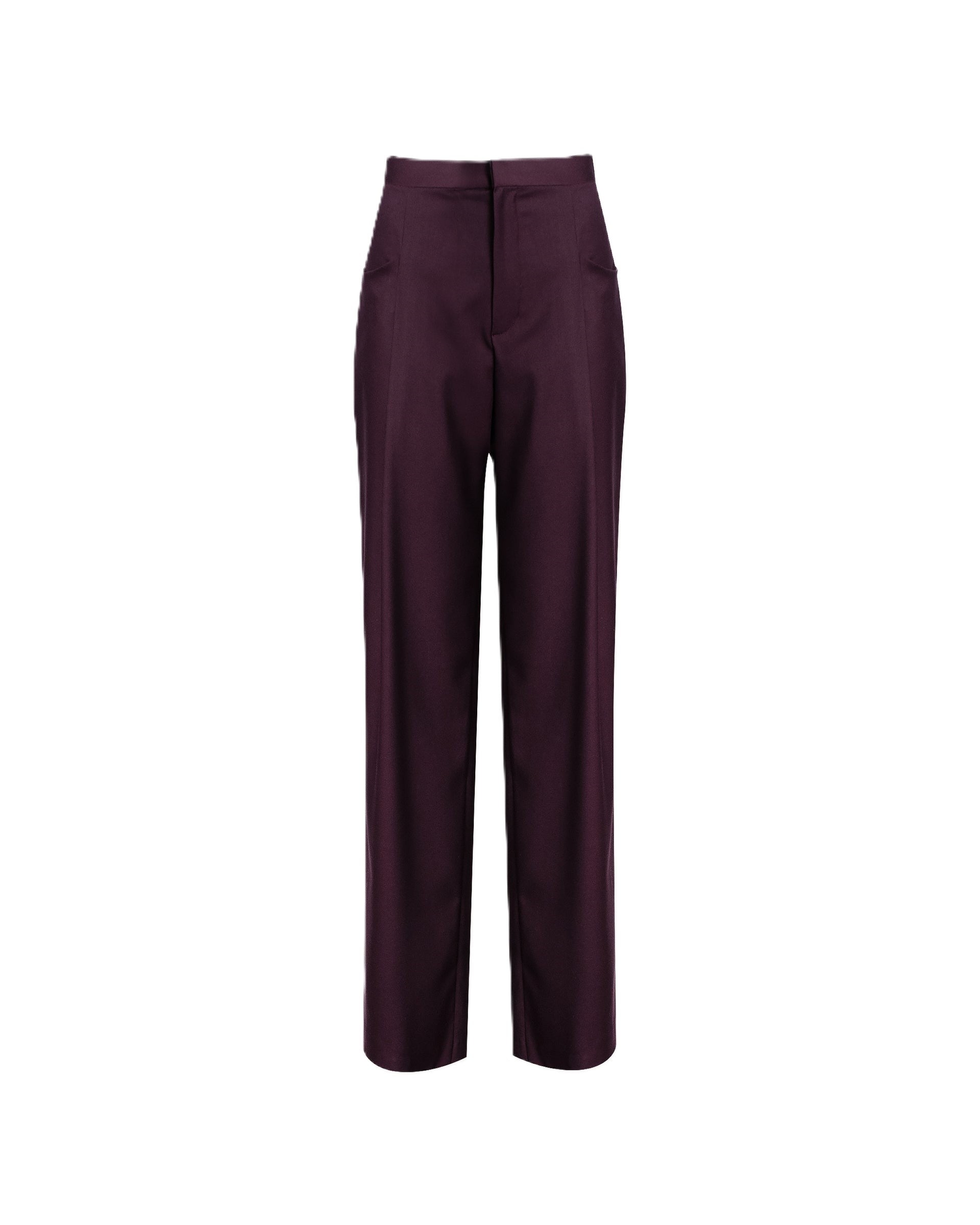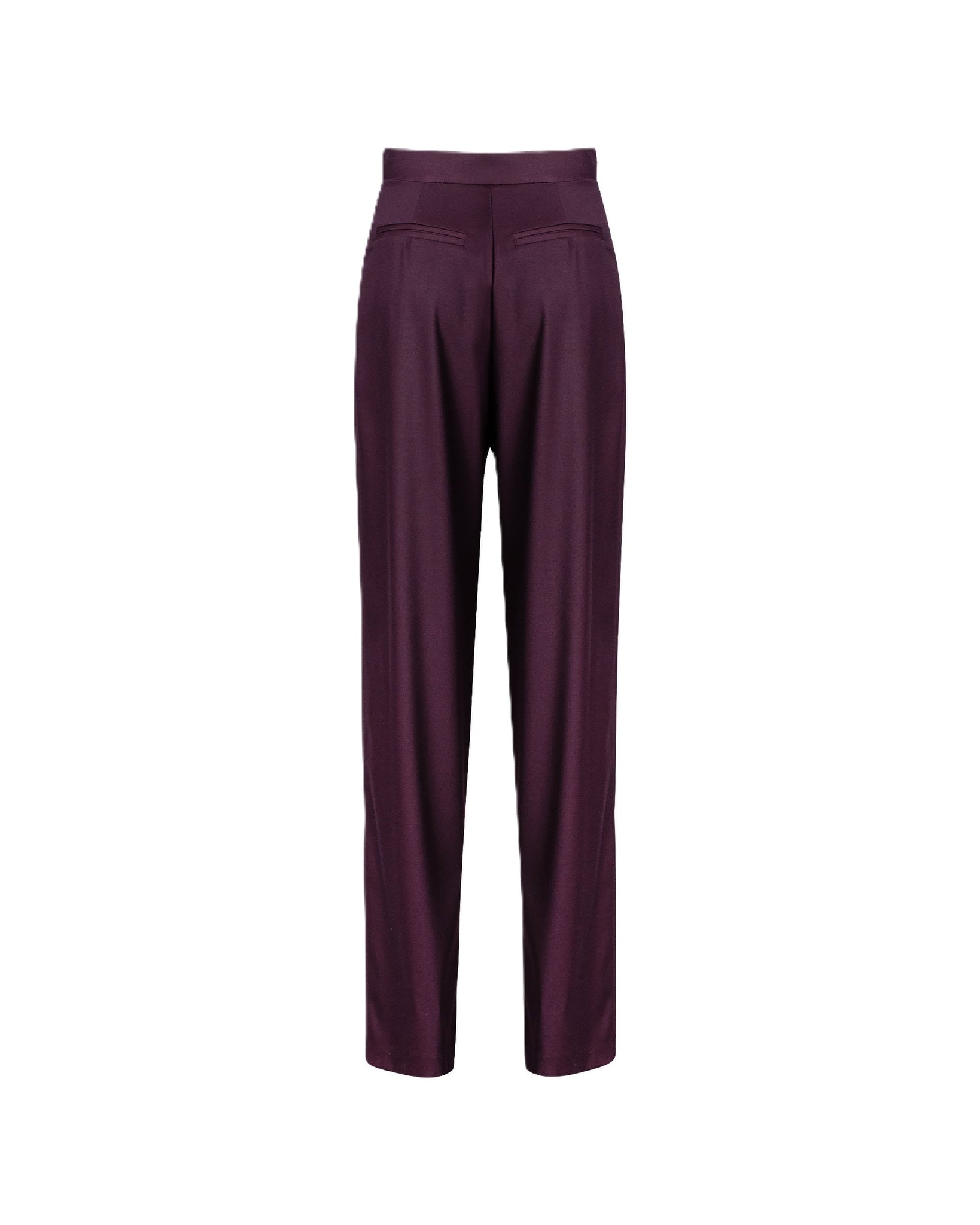 Pantaloni da donna in flanella con vita alta, pince frontali e gamba ampia che si stringe leggermente al fondo.