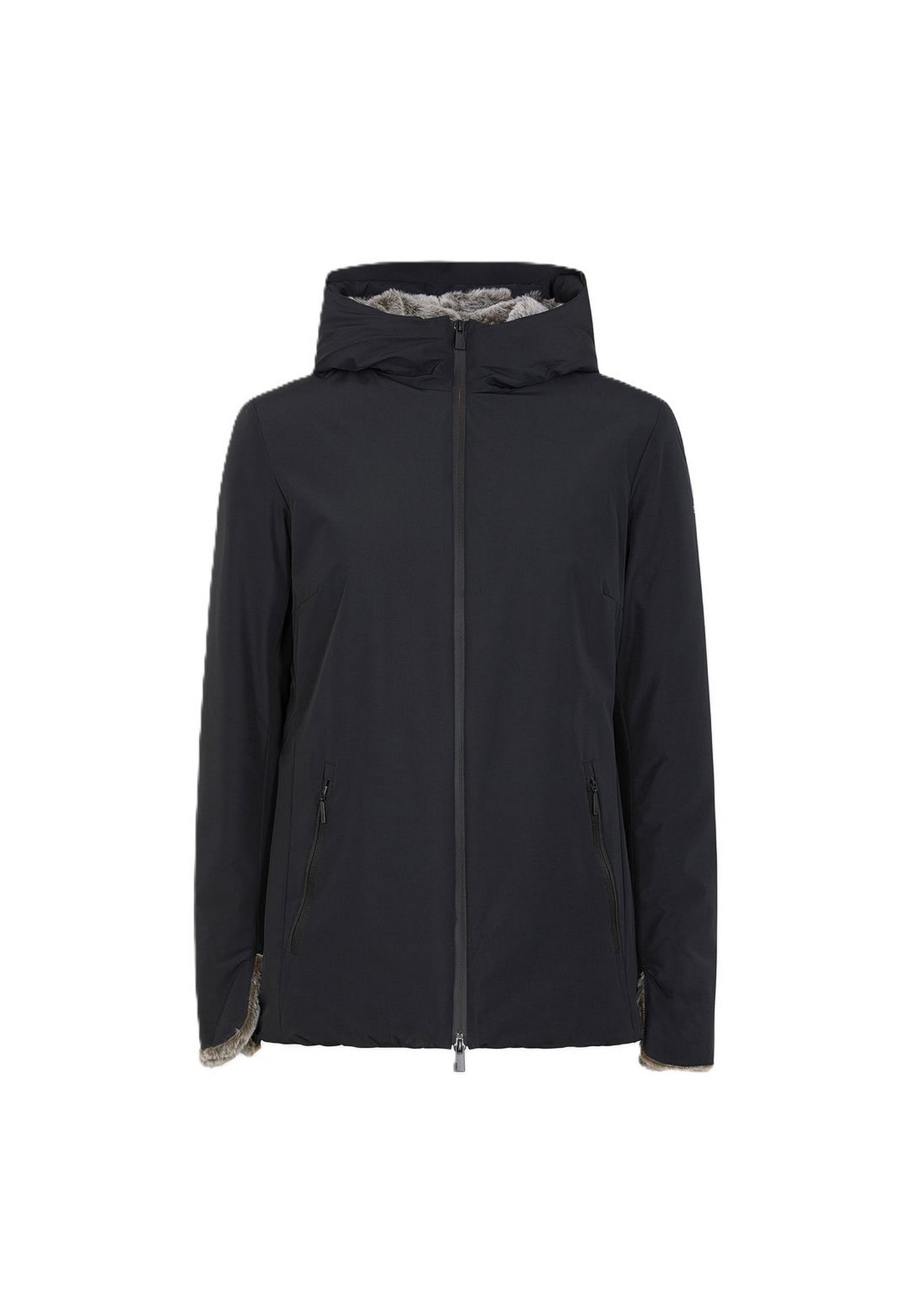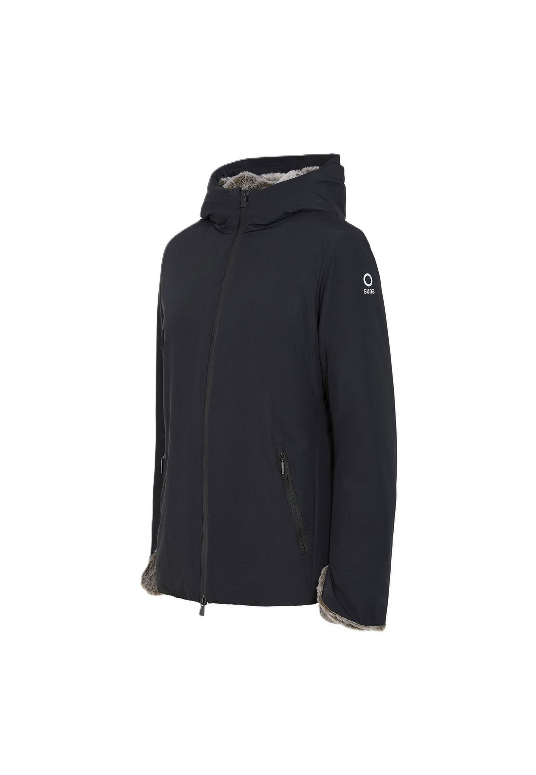 All’interno, l’eco pelliccia calda assicura un elevato livello di protezione dal freddo, rendendo il giubbotto ideale per le giornate più rigide. Le tasche laterali con zip completano il design aggiungendo un tocco pratico senza comprometterne la linea pulita.