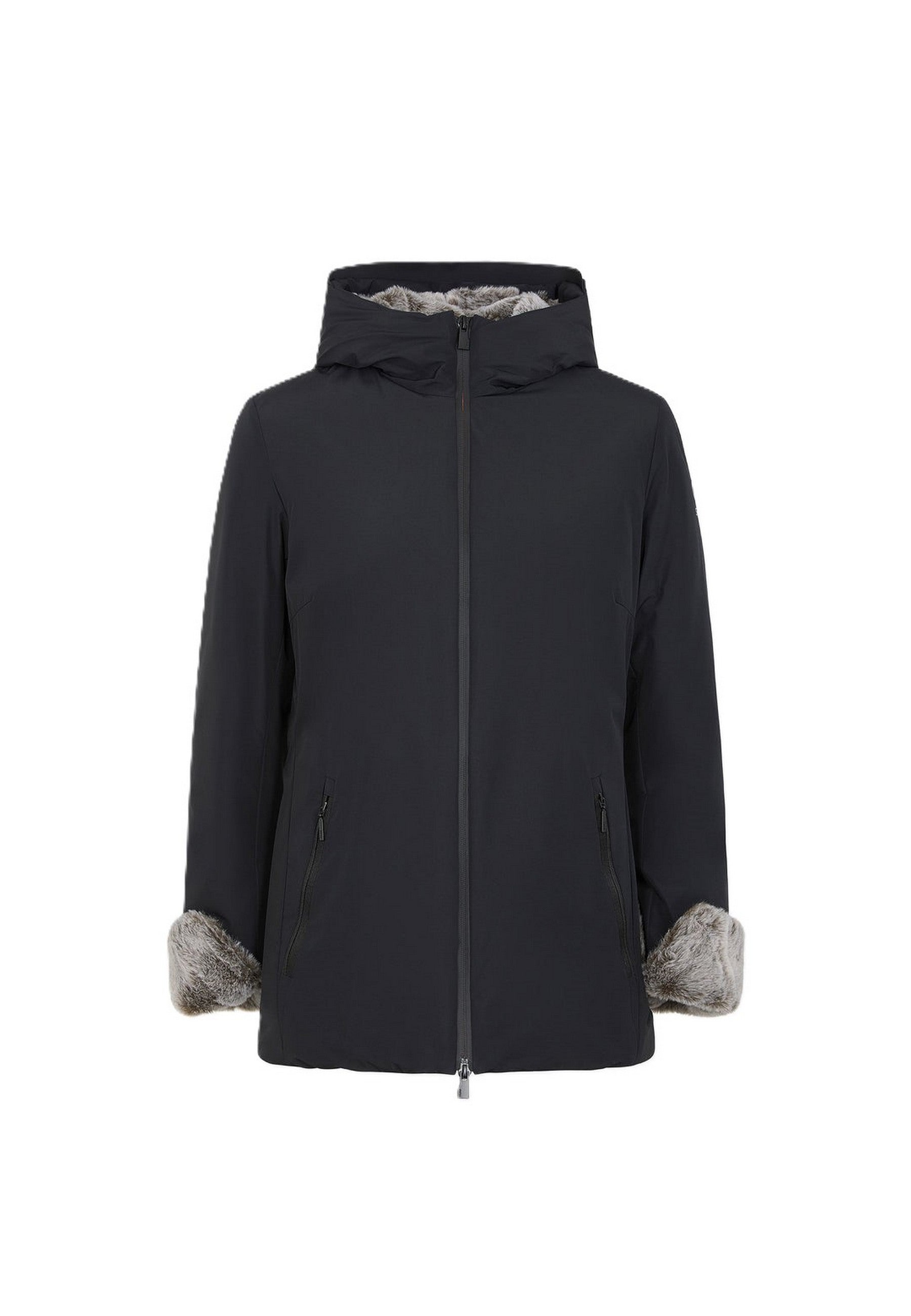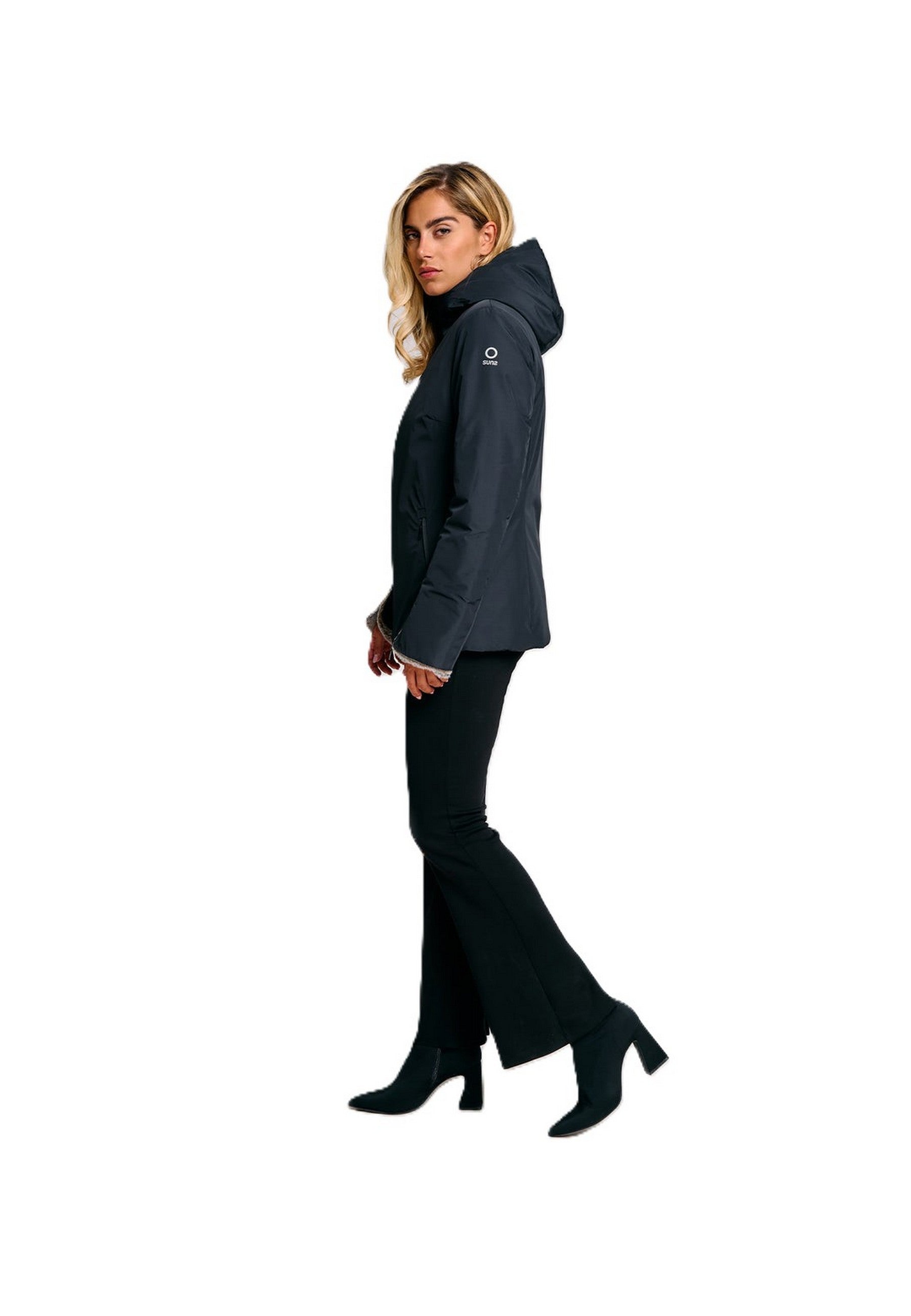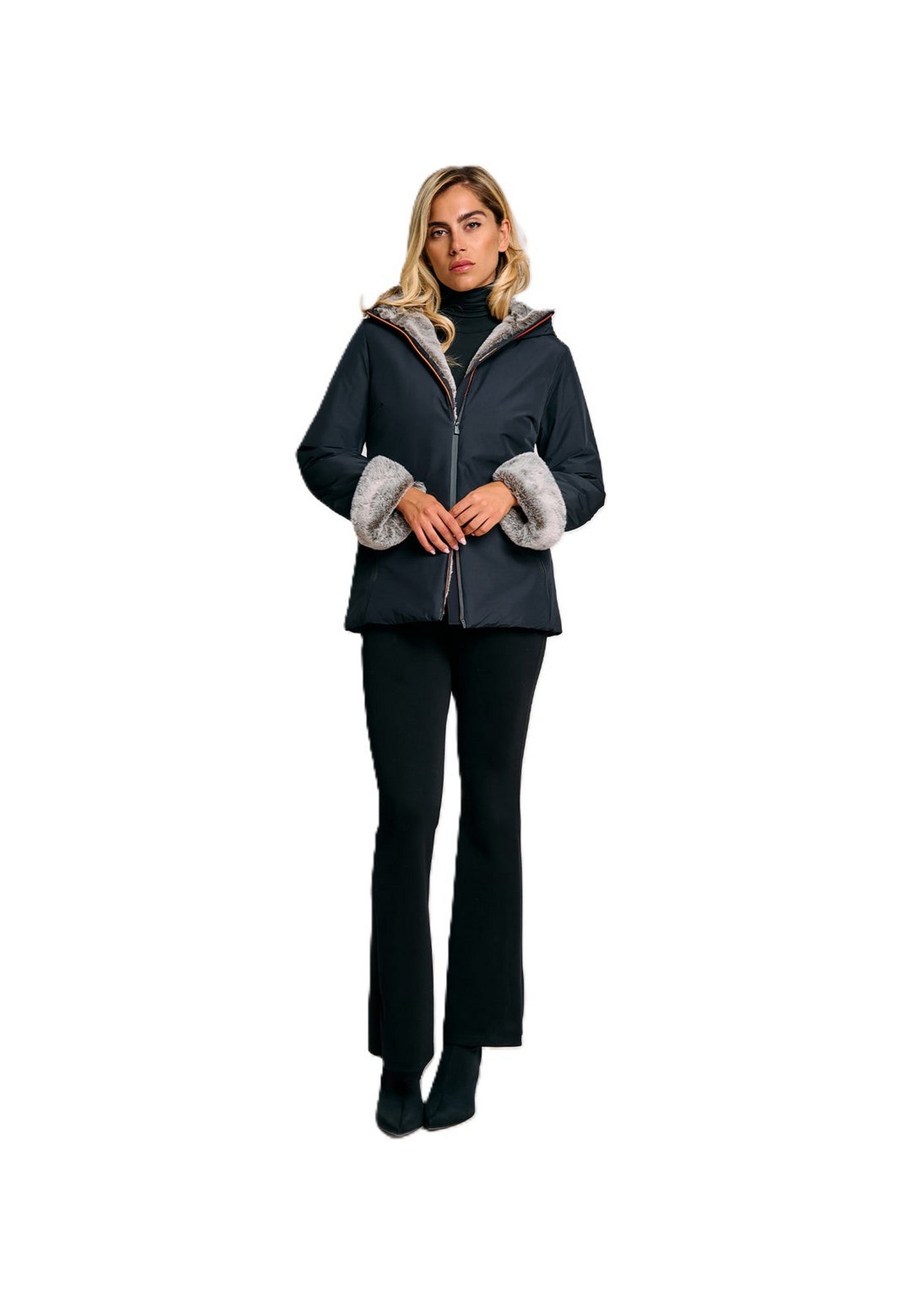 Linee pulite, dettagli ricercati e comfort assoluto: questo giubbotto dal design minimal è pensato per affrontare l’inverno con stile e raffinatezza. Il modello presenta un cappuccio fisso, una chiusura frontale termosaldata e un’estetica essenziale ma funzionale. A dare carattere al capo, il fondo manica rifinito in eco pelliccia a contrasto, un dettaglio distintivo che ne esalta la femminilità.