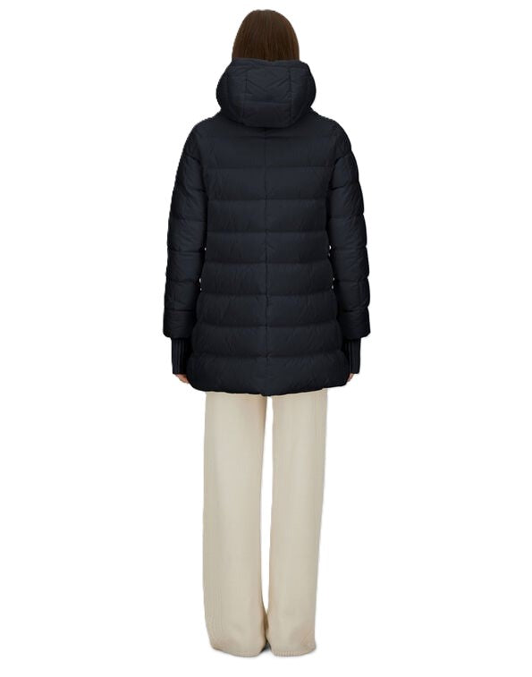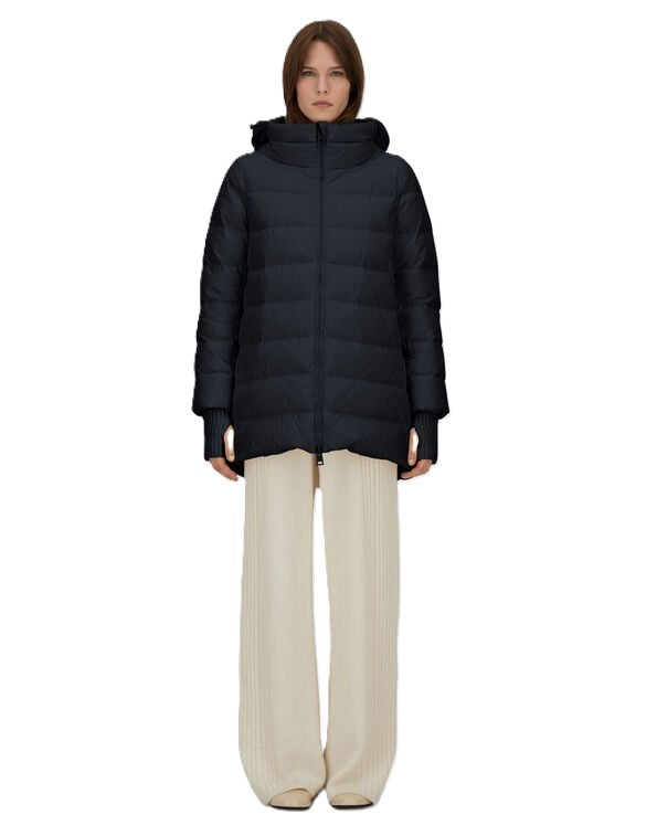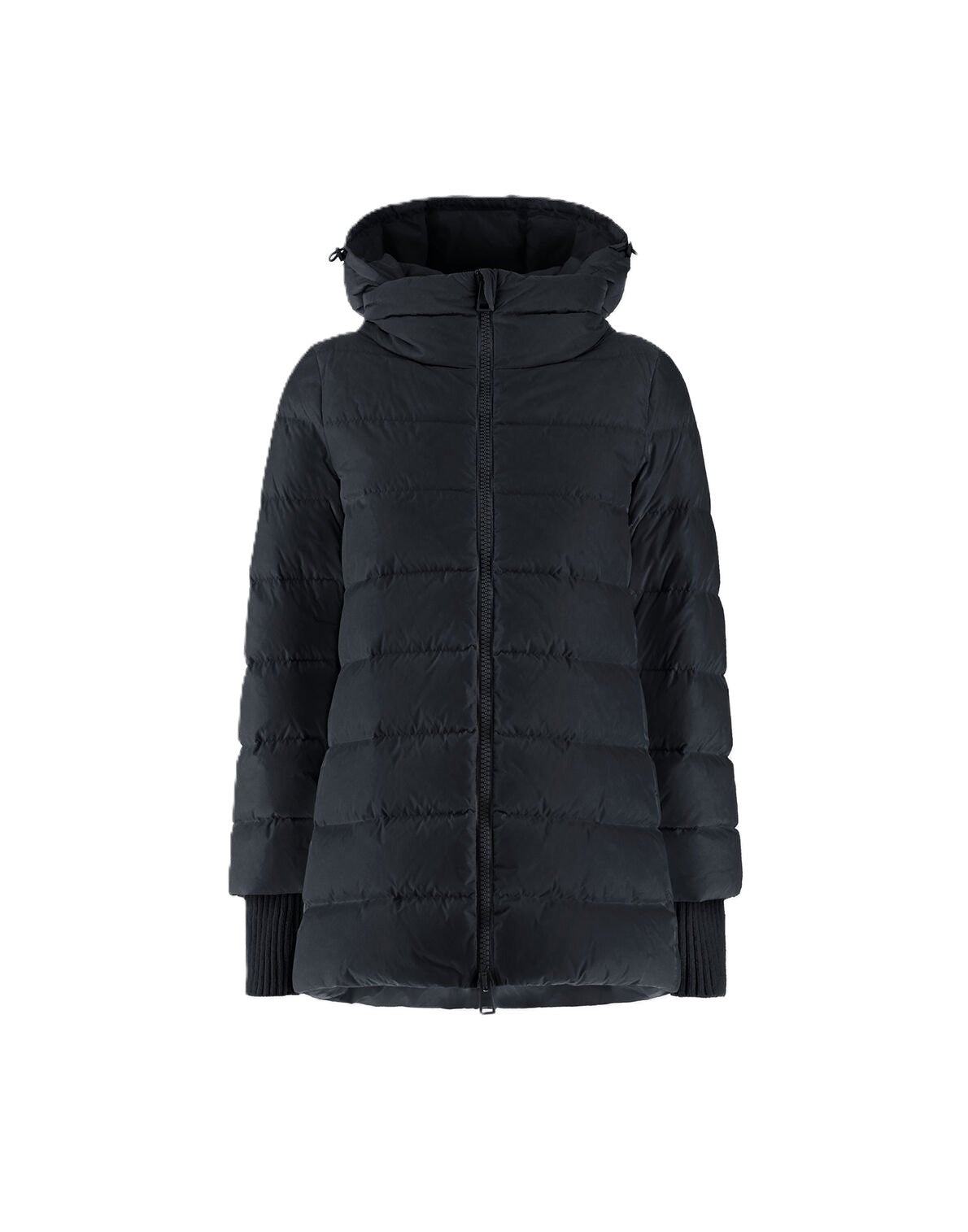 A-shape realizzata in nylon Chamonix dalle ottime performance tecniche con lavorazione sacco piuma e tecnologia Polartech che offre calore e resistenza al vento. Con cappuccio staccabile e zip a doppio cursore, il modello combina contenuto funzionale con un'estetica ricercata e femminile.