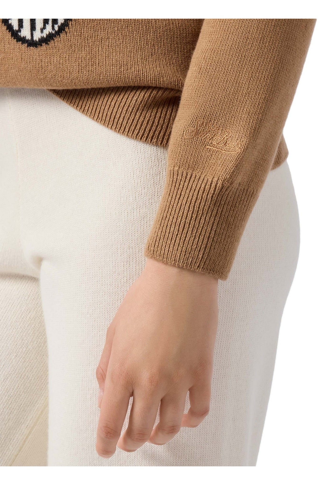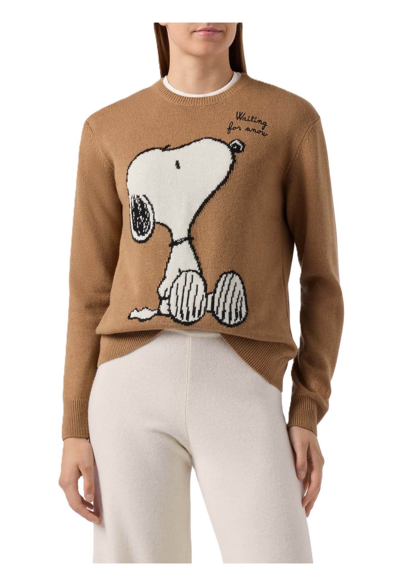 Maglione in misto cashmere cammello con jacquard Snoopy e ricamo | PEANUTS SPECIAL EDITION