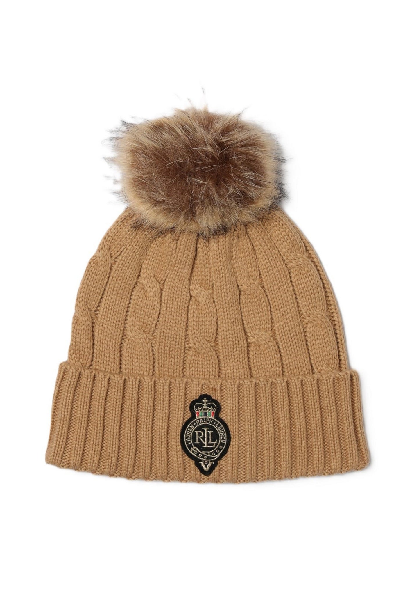 Cappello Lauren Ralph Lauren in misto lana a coste intrecciate con pompon