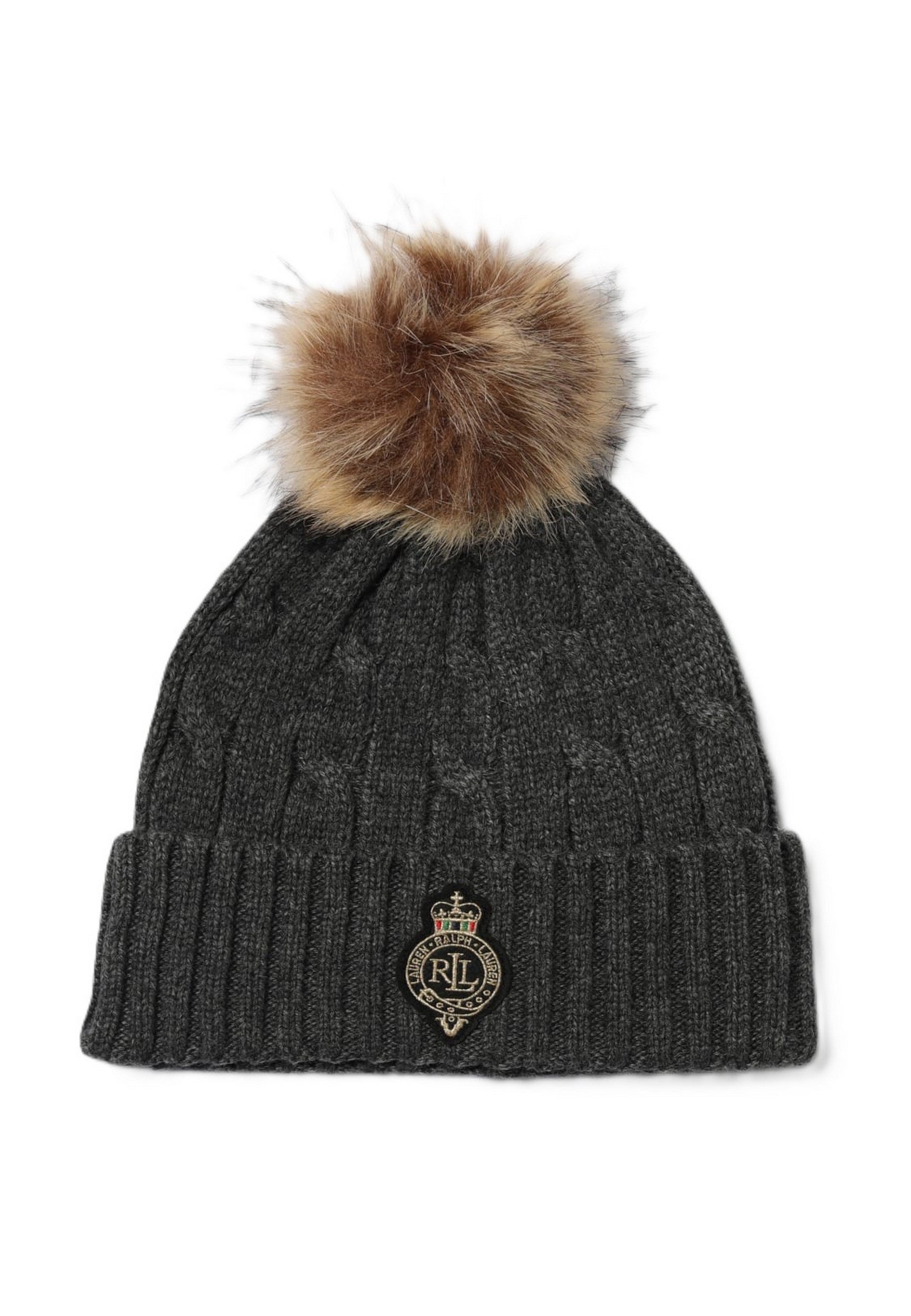 Cappello Lauren Ralph Lauren in misto lana a coste intrecciate con pompon