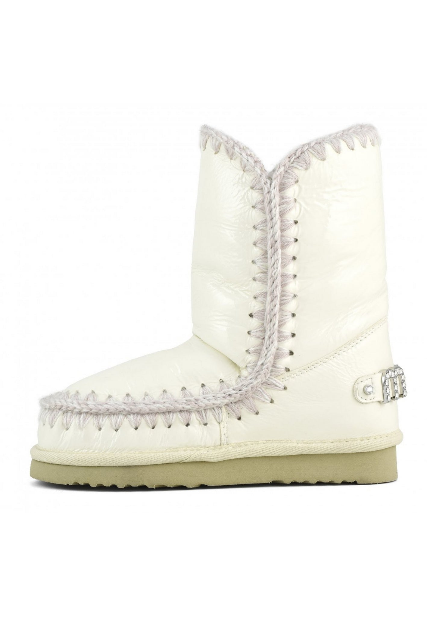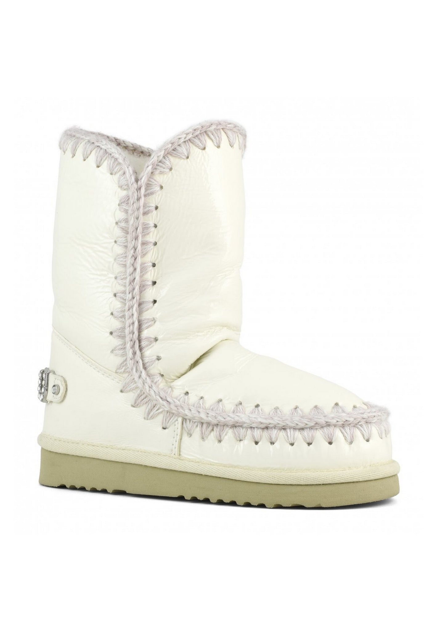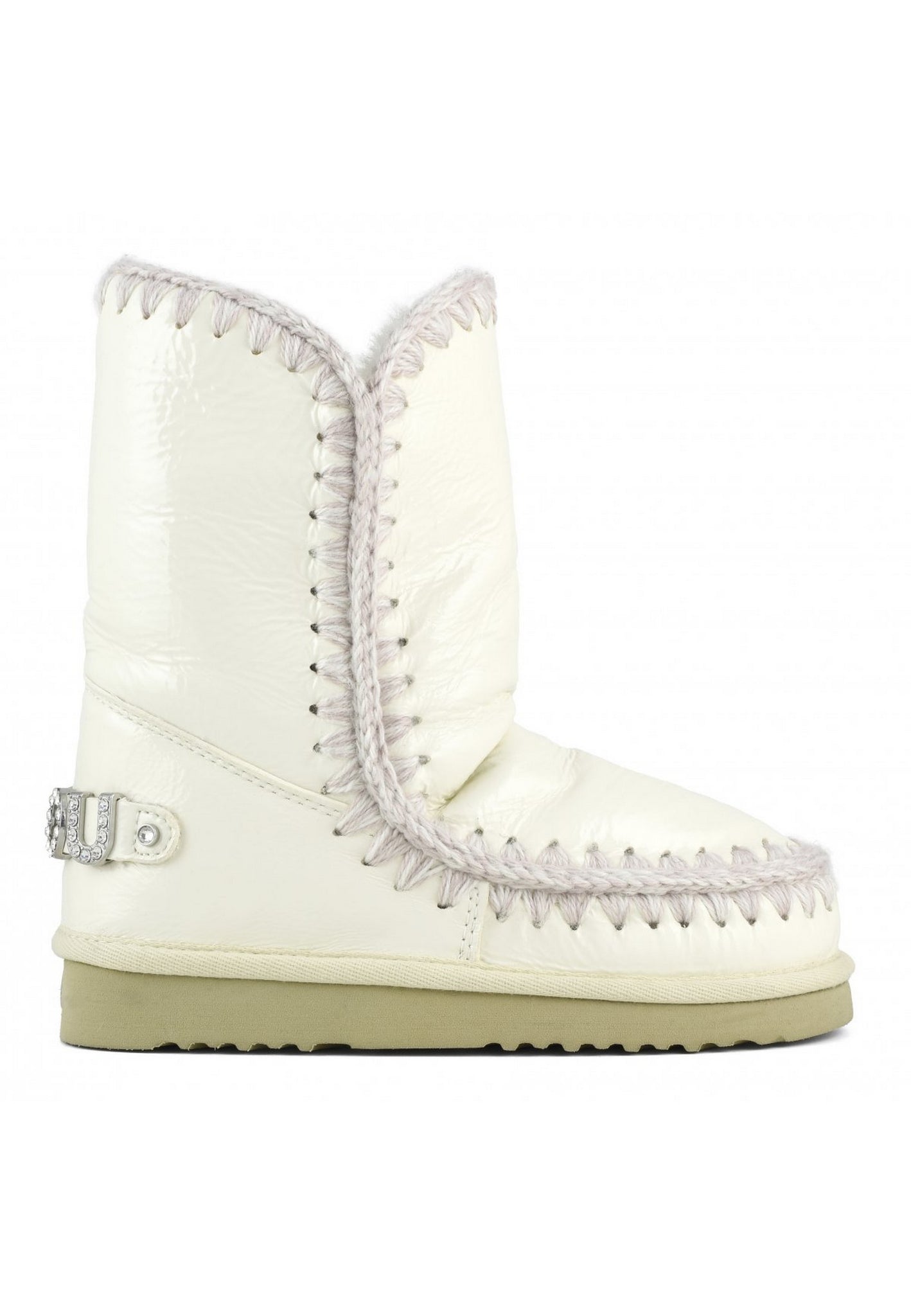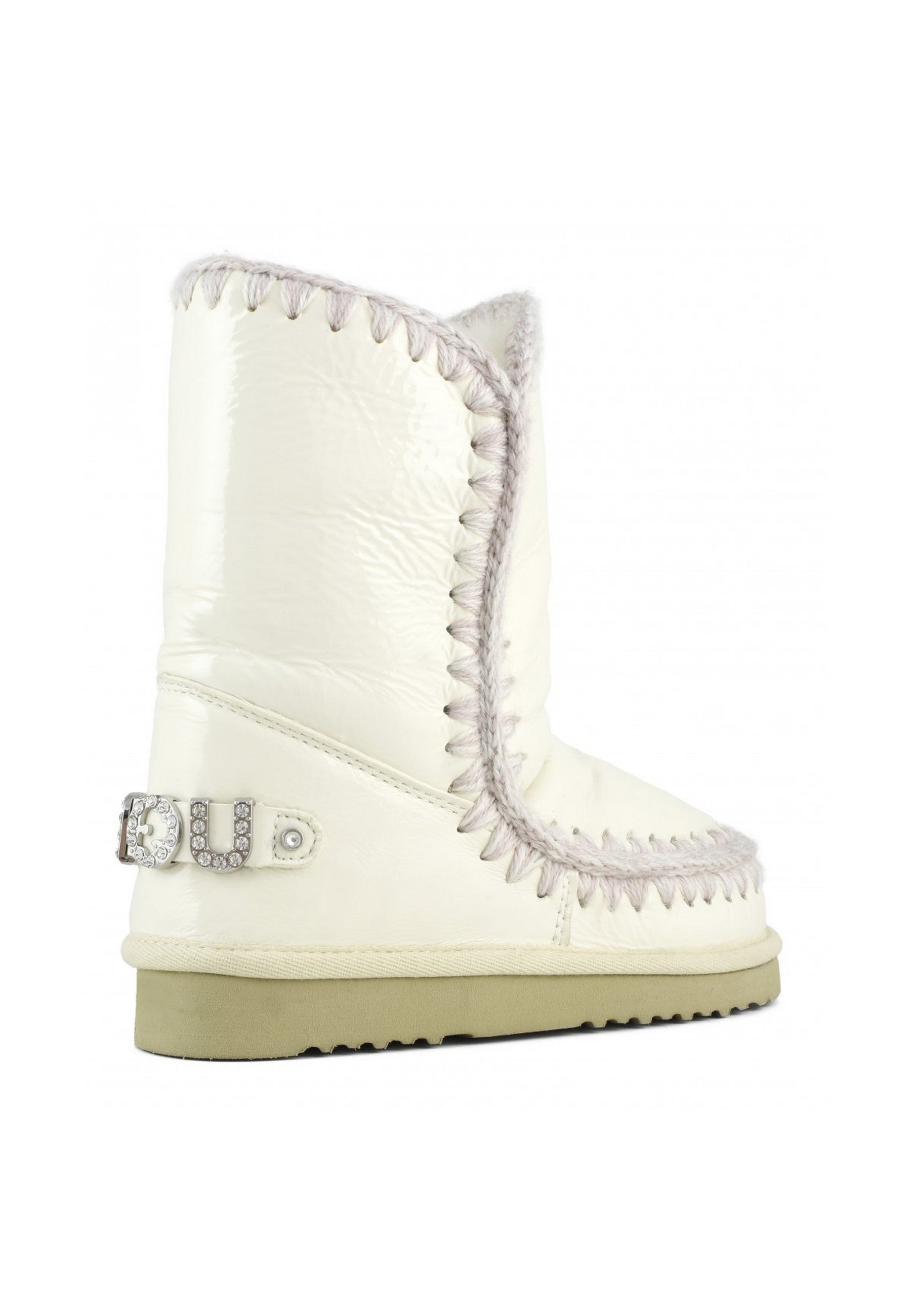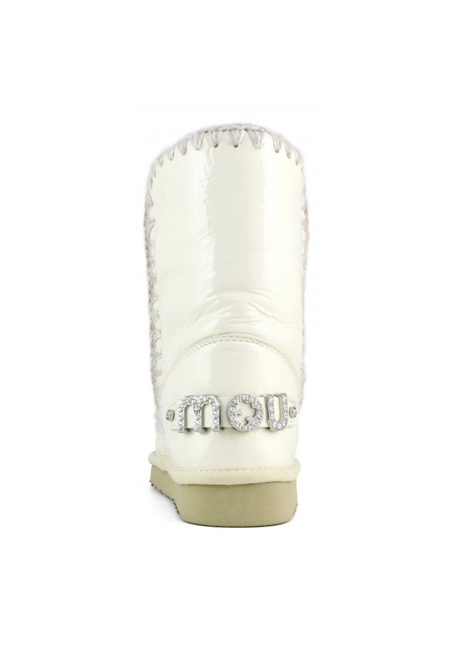Stivale Mou effetto pelle lucida bianco con fibia sul tacco con logo con strass.