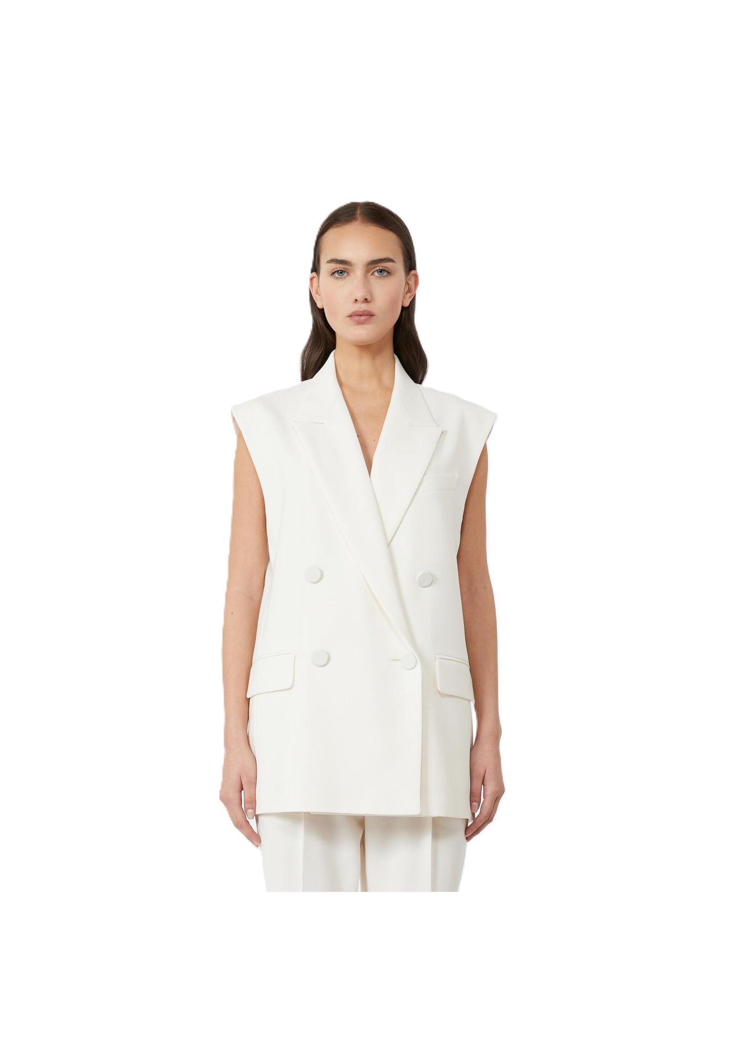 Giacca smanicata doppiopetto d'ispirazione sartoriale.