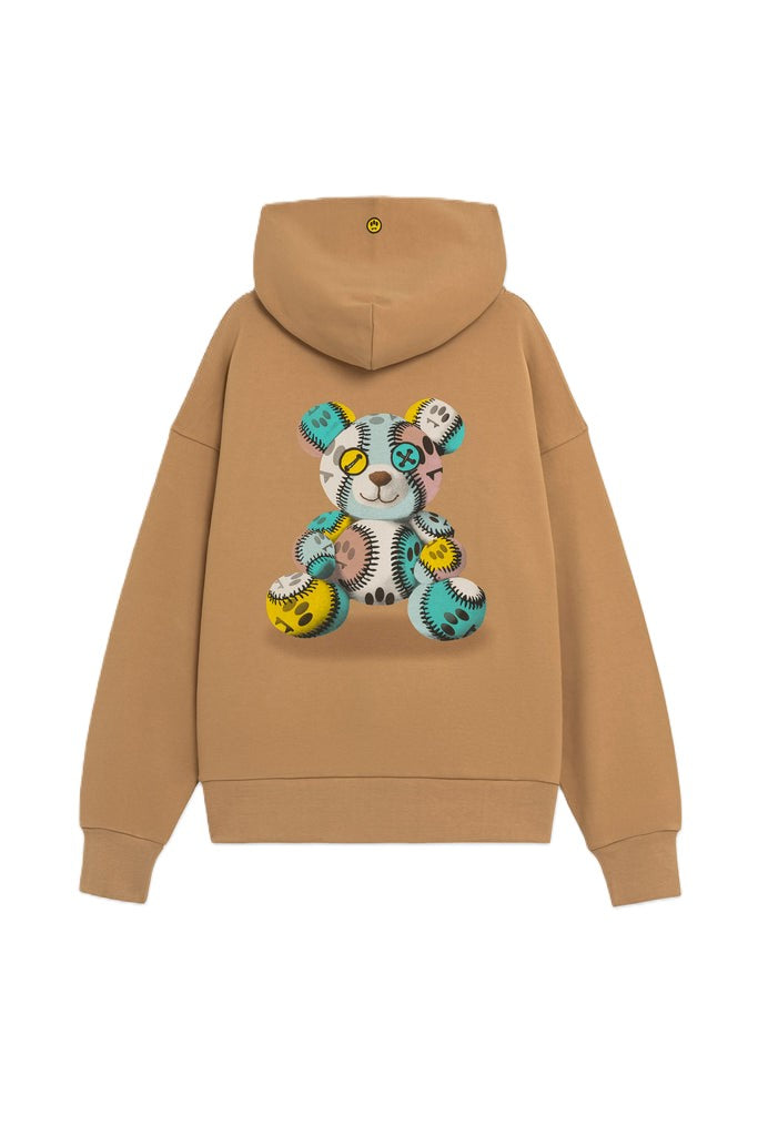 Felpa con logo BARROW ricamato e dettaglio smile sul petto, maxi stampa orsetto patchwork sul retro e tasca a marsupio. Completano il design la mini patch smile applicata sul cappuccio e i dettagli curati che uniscono stile e originalità.