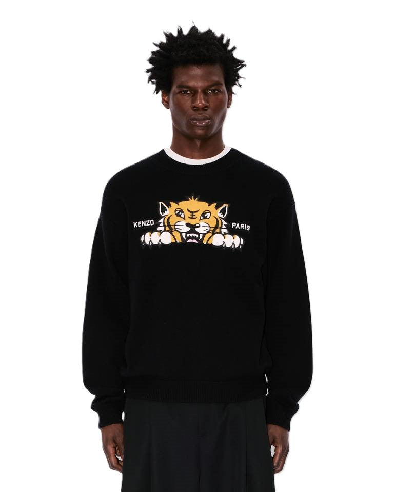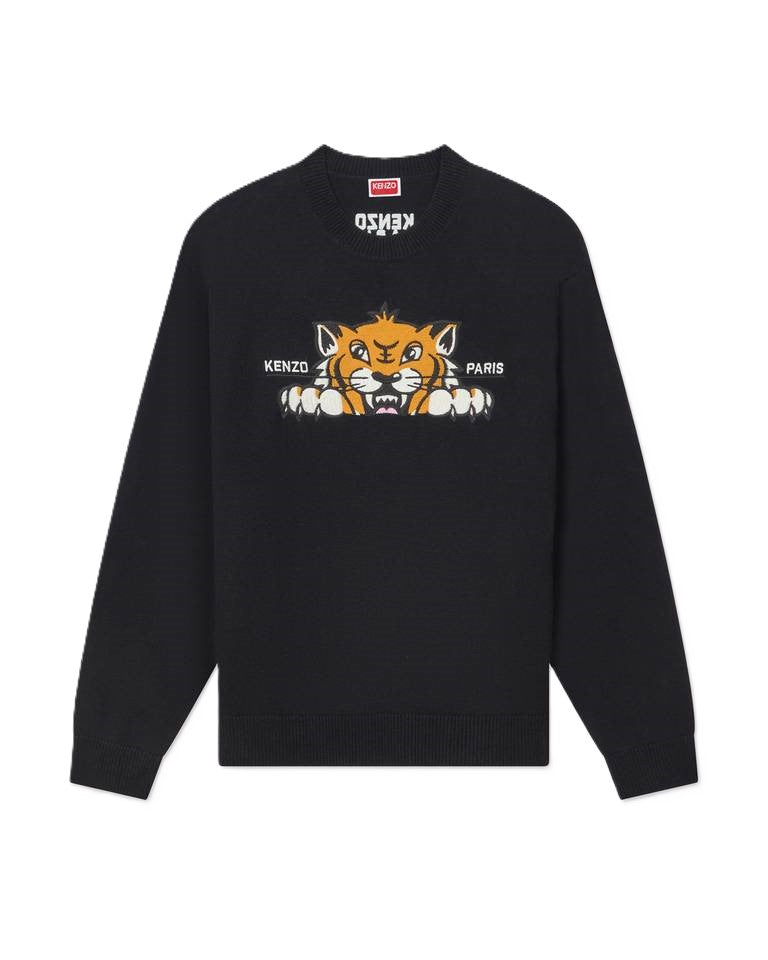 Maglione in cotone e lana Merino con ricamo 'KENZO Happy Tiger'