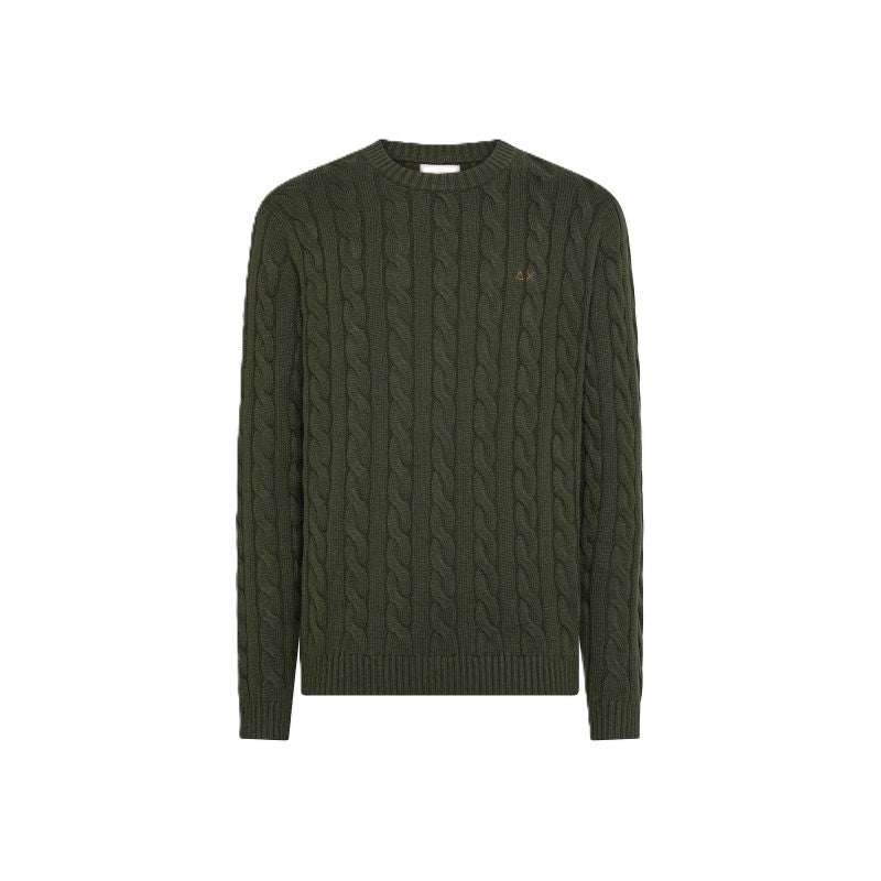 Maglia girocollo in misto lana a trecce militare