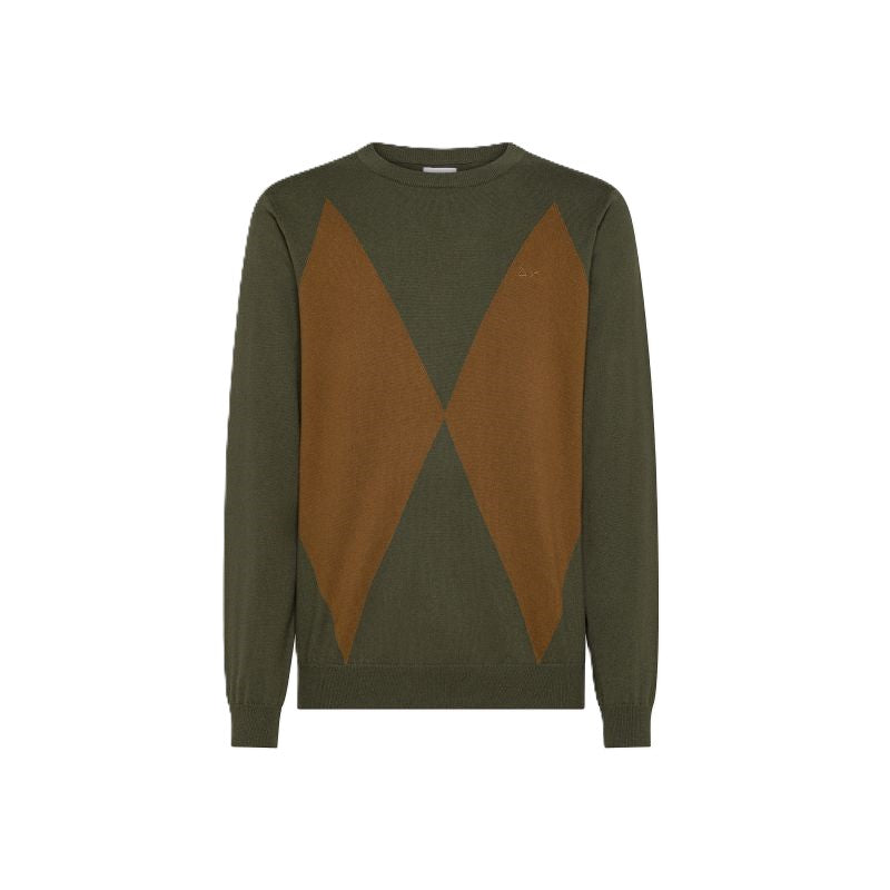 Maglia in lana e cotone con rombi militare scuro/volpe