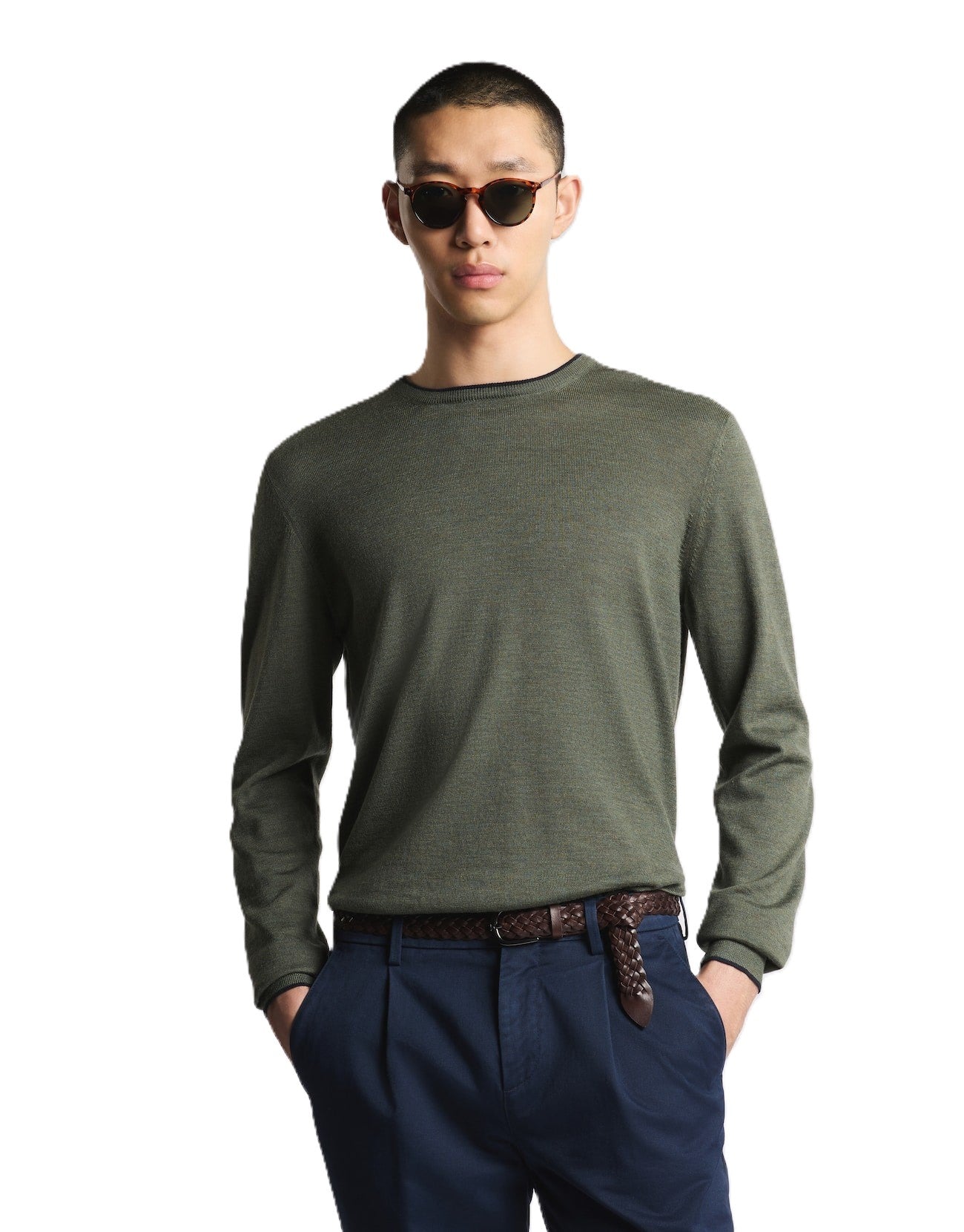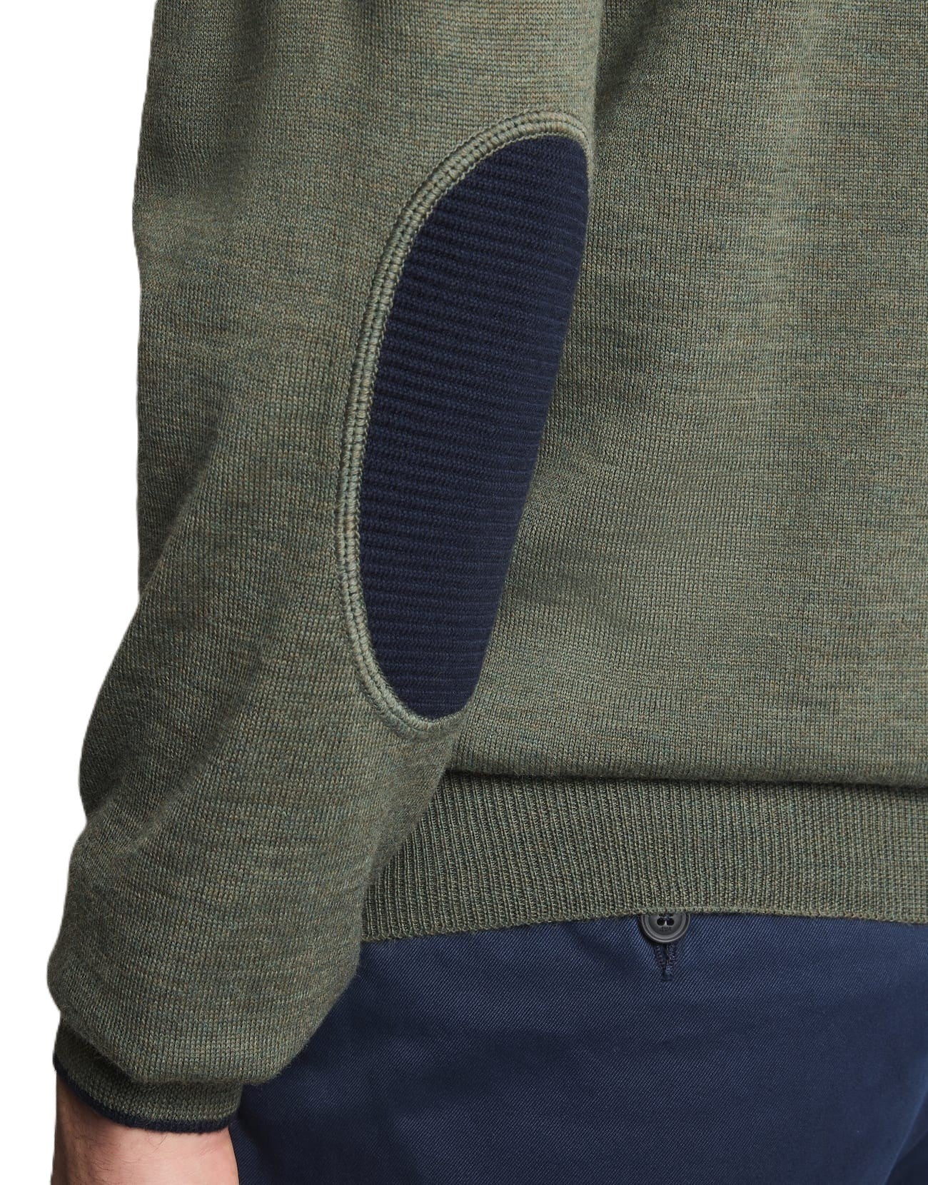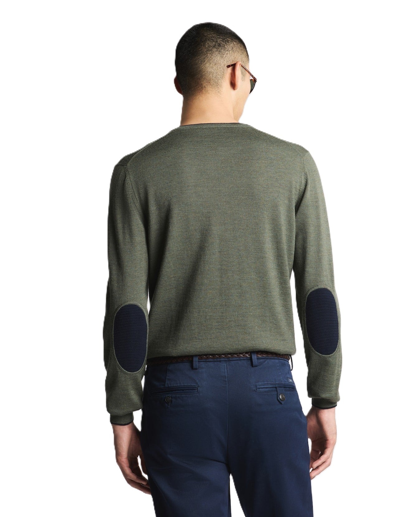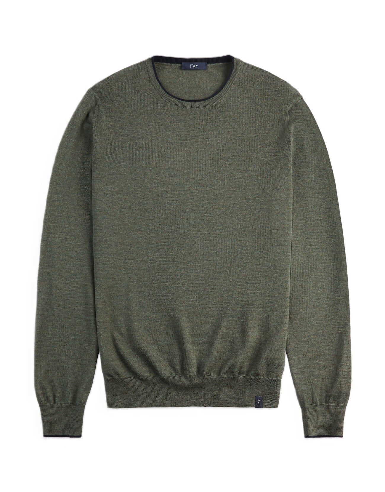 Maglione girocollo in maglia rasata di lana, arricchito da toppe sui gomiti e profili a contrasto per un tocco distintivo. L’etichetta Fay cucita sul fondo completa questo capo casual dallo stile intramontabile.