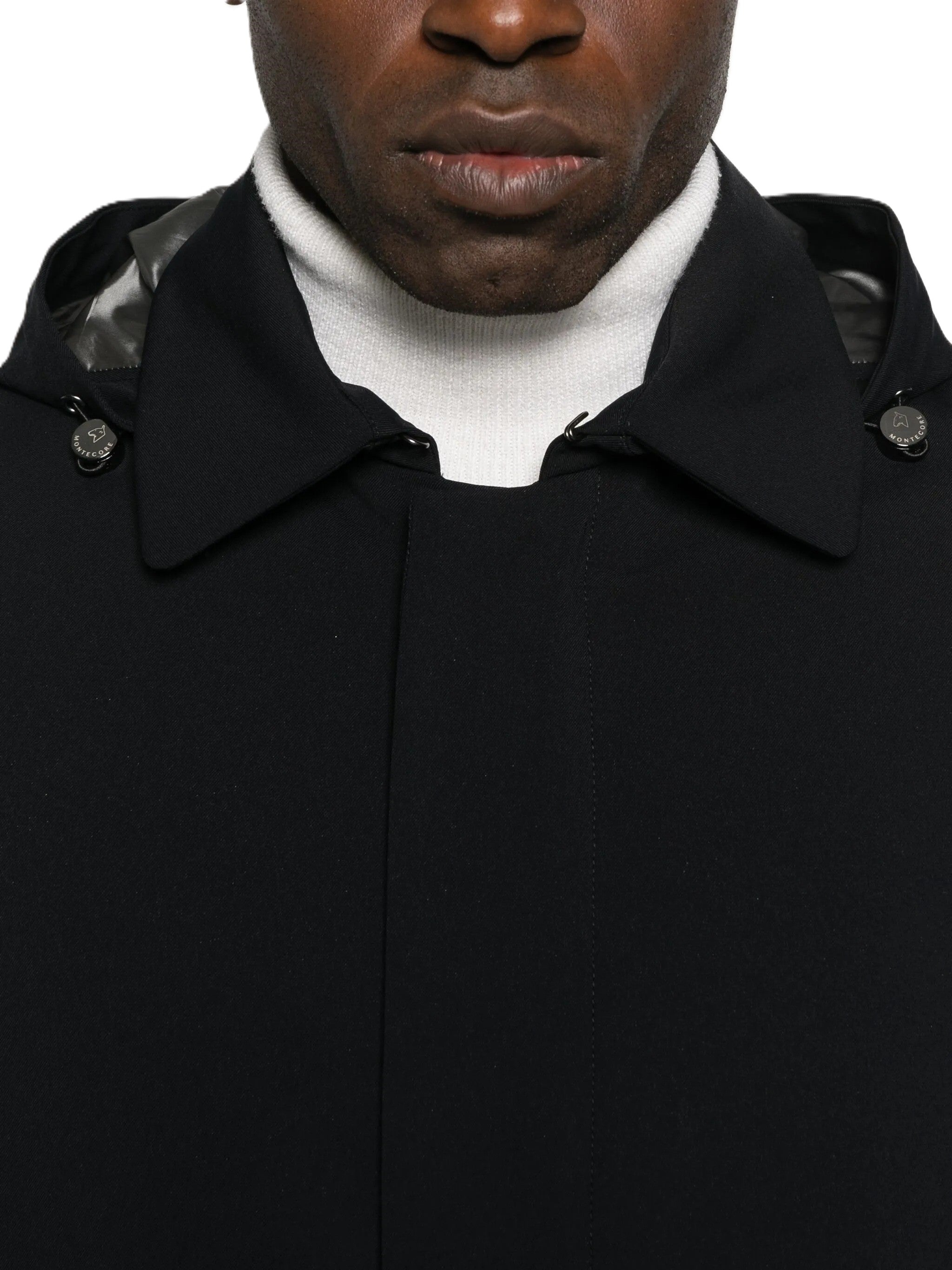 Perfetto per il commuting urbano o per completare un outfit formale nelle giornate di pioggia, questo cappotto rappresenta l’eccellenza sartoriale e l’innovazione stilistica firmata Montecore.
