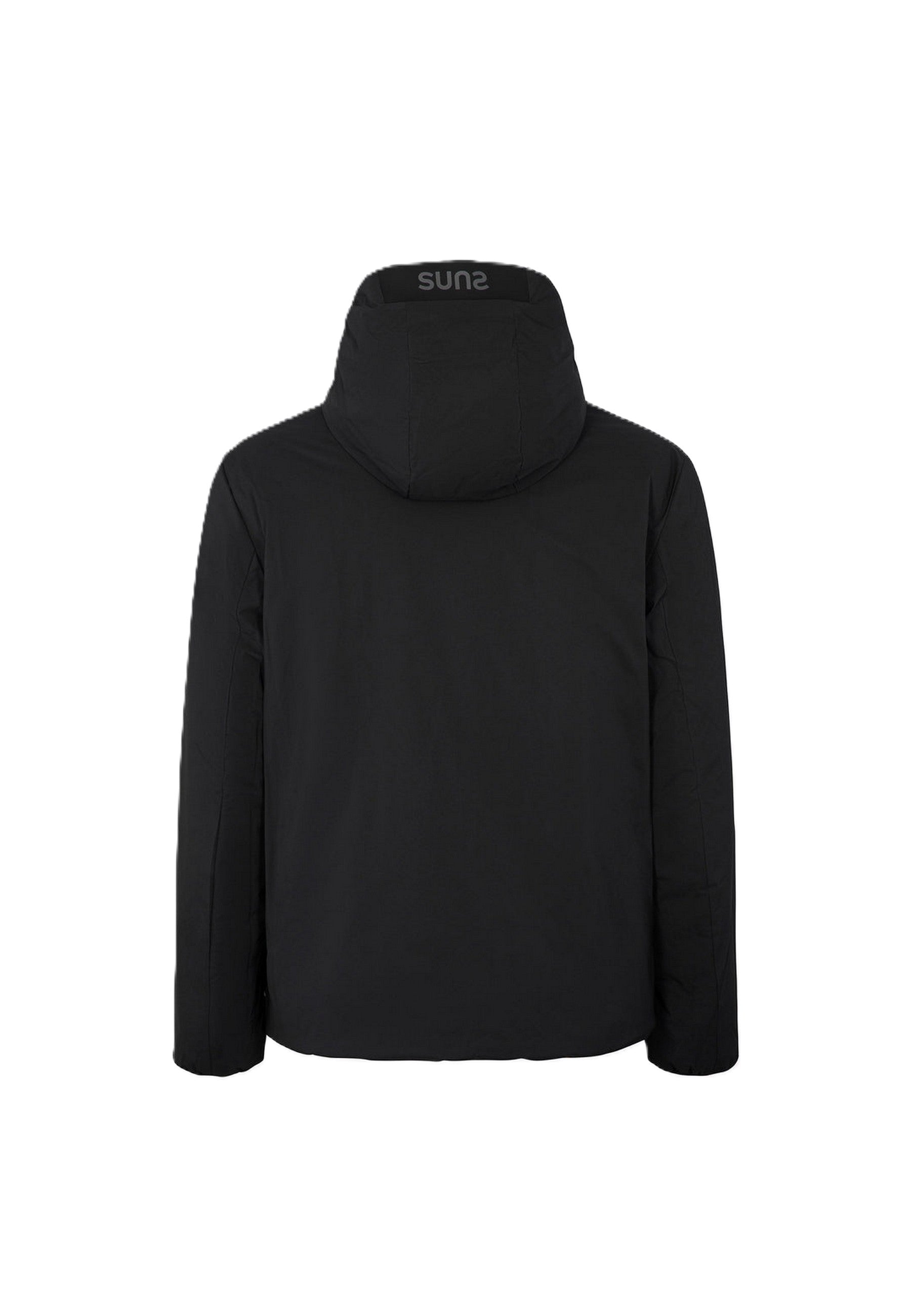 Il cappuccio fisso protegge dal vento e presenta un inserto in gomma con logo Suns applicato sul retro, dettaglio distintivo del brand. Completano il capo una zip waterproof a doppio cursore, tasche laterali con chiusura zip su uno dei due lati e finiture curate, perfette per un utilizzo urbano e quotidiano.