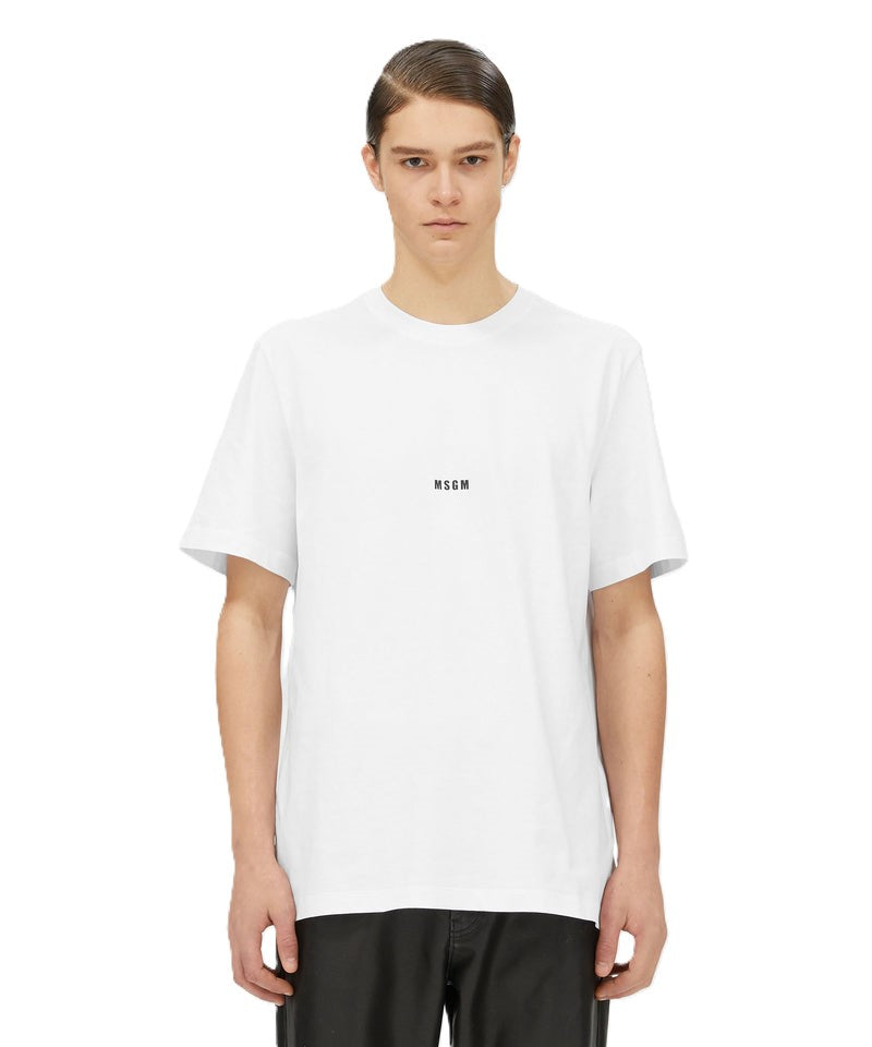 T-shirt girocollo in cotone con micro logo