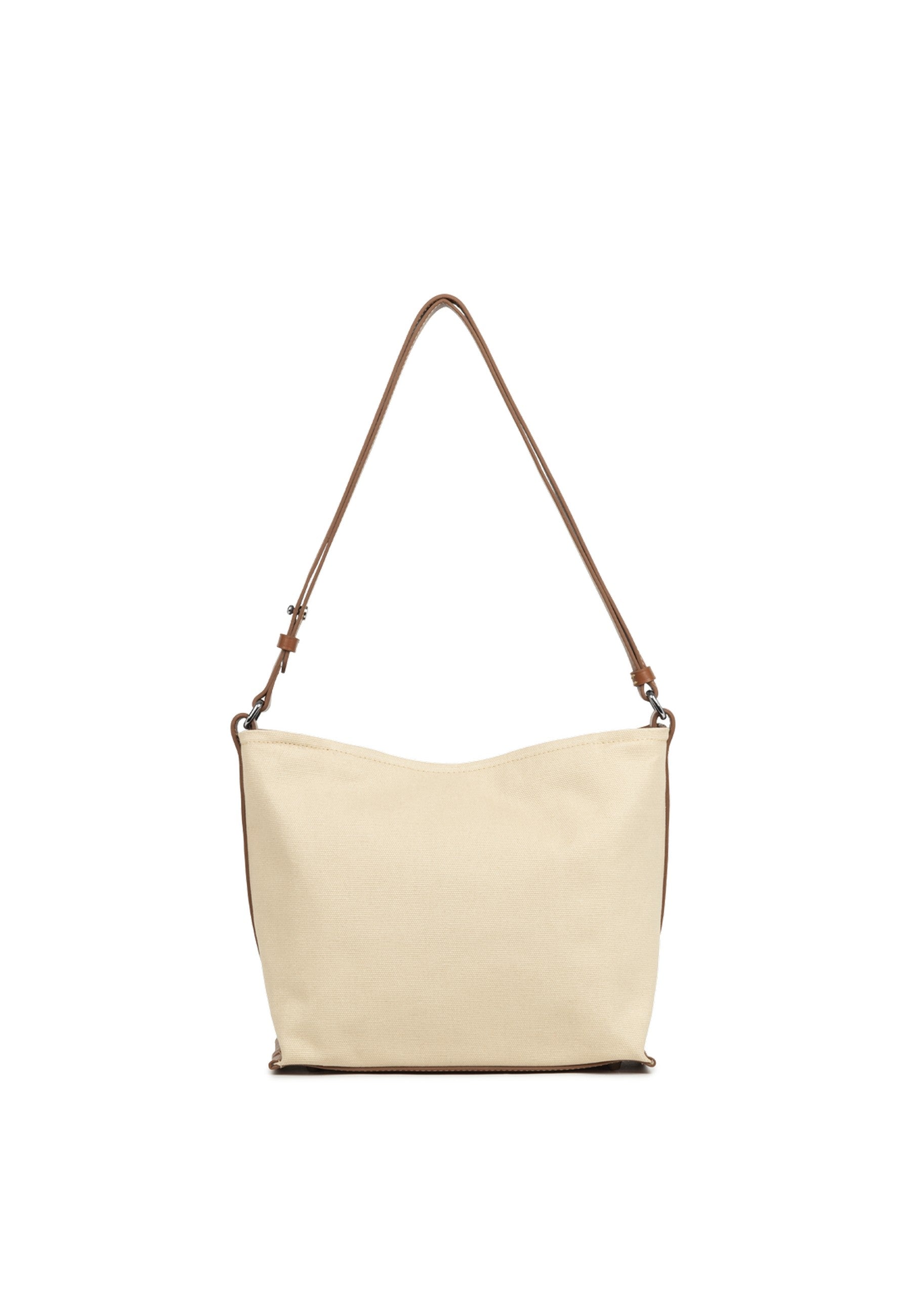 Borsa a secchiello in cotone con raffinate finiture in pelle di vitello. Funzionale e versatile, è dotata di portacarte frontali con chiusura a pressione, una tasca interna con zip e una tasca interna aperta per organizzare al meglio gli effetti personali. Comoda da indossare a spalla, è perfetta per l’uso quotidiano.