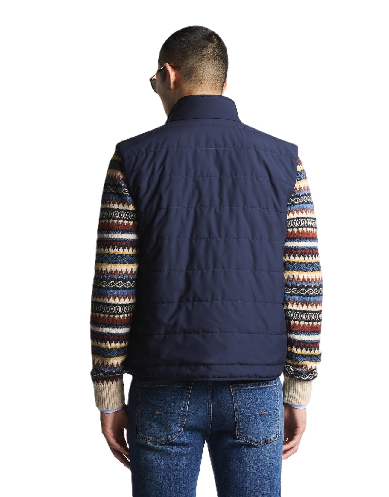 Gilet in nylon trapuntato con collo in piedi, imbottito in ovatta per garantire calore e leggerezza.