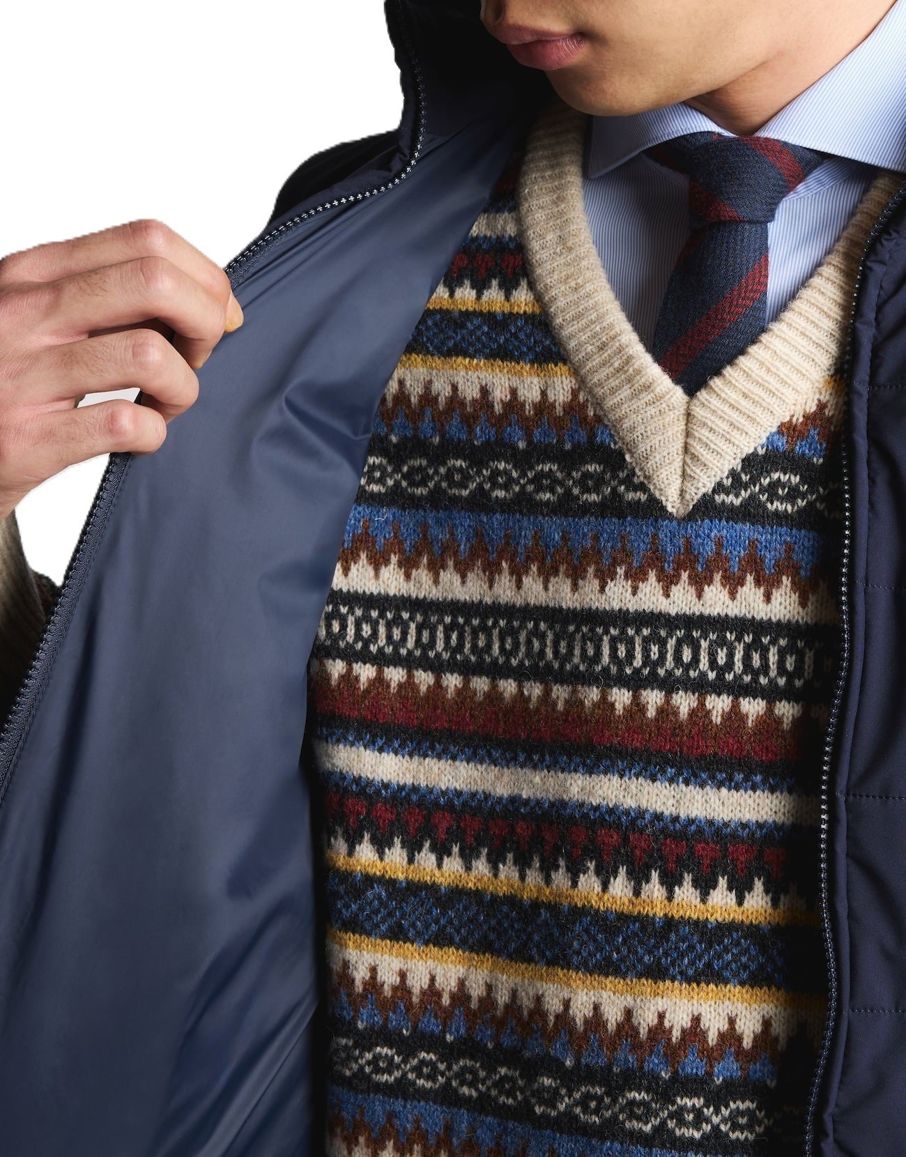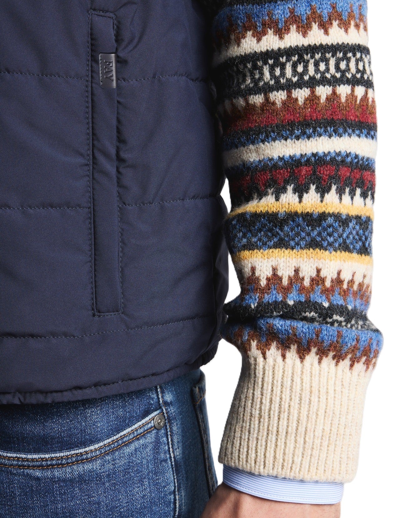 Dotato di tasche a filetto con zip, di cui una arricchita dalla patch in pelle con logo Fay, e un taschino pochette. Il capo si chiude con una pratica zip.