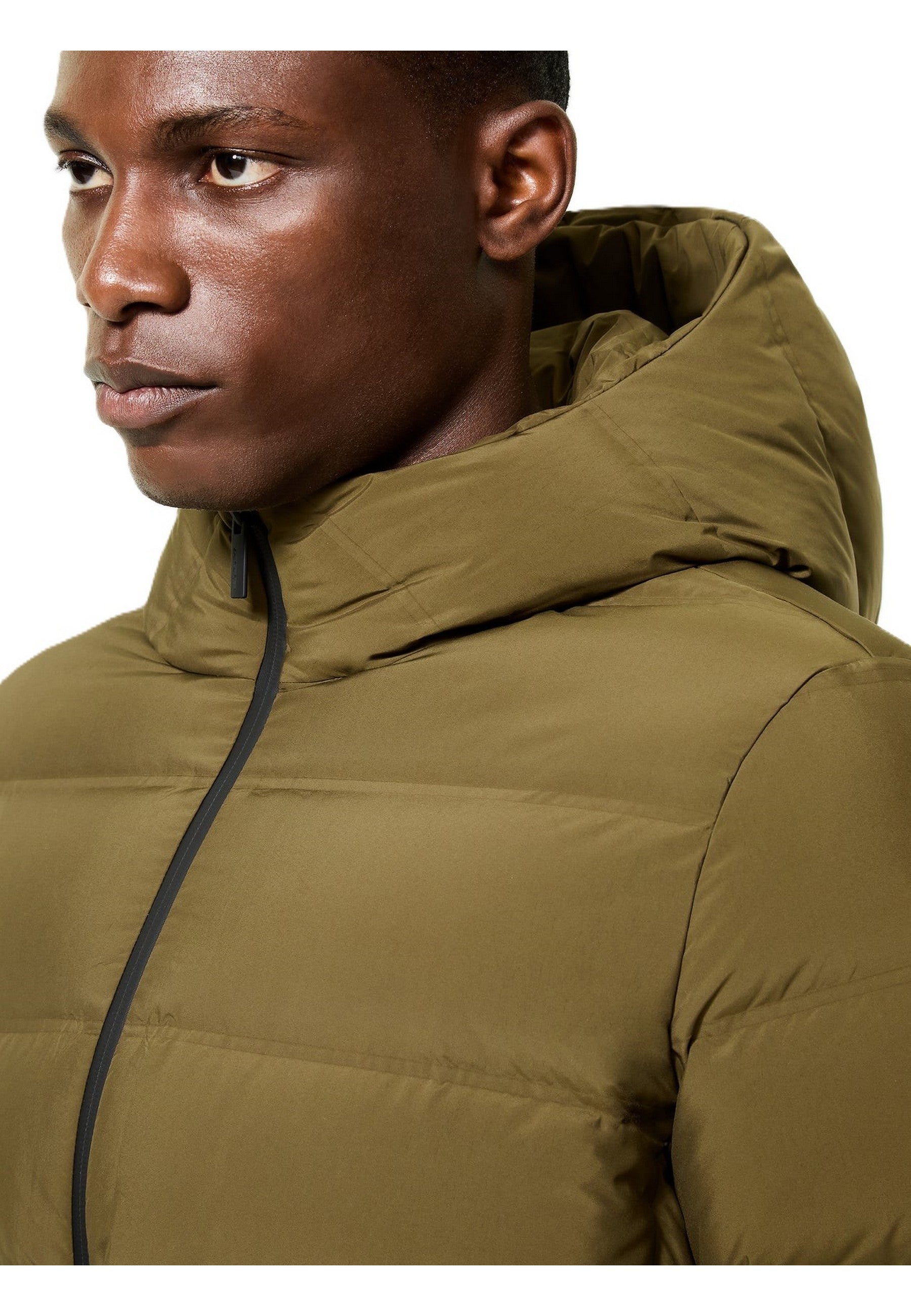 Il piumino di lunghezza media con fit regolare combina calore, leggerezza e comfort, grazie alla piuma d’anatra 90/10 racchiusa nei canali tubici senza cuciture. La costruzione ad alta densità, rinforzata dalle termonastrature interne, garantisce protezione e isolamento ottimale.